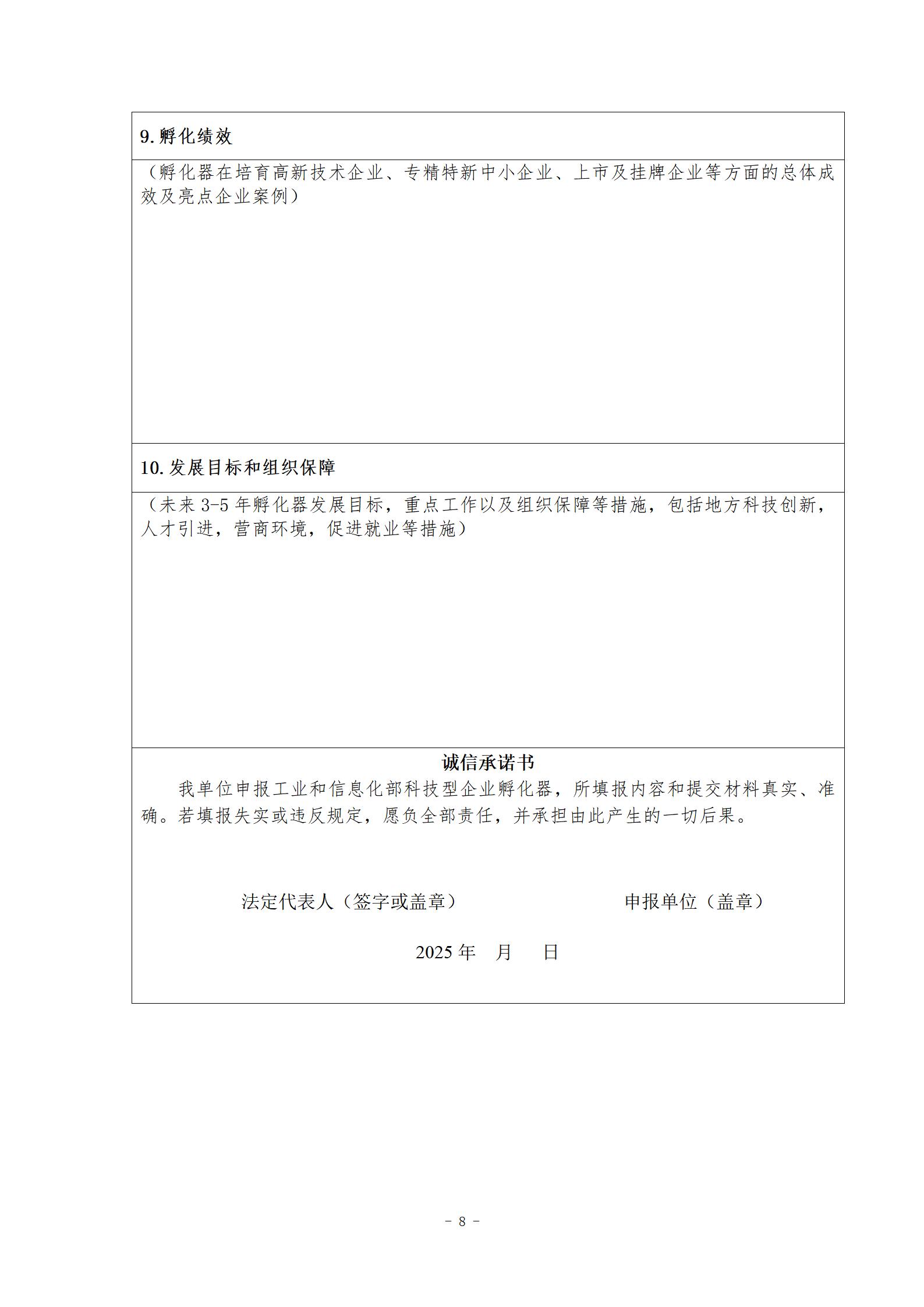 为加强科技型企业孵化器管理,根据《工业和信息化部科技型企业孵化器管理办法》(工信部科〔2025〕131号,以下简称《管理办法》),现就2025年工业和信息化部科技型企业孵化器申报工作有关事项通知如下。