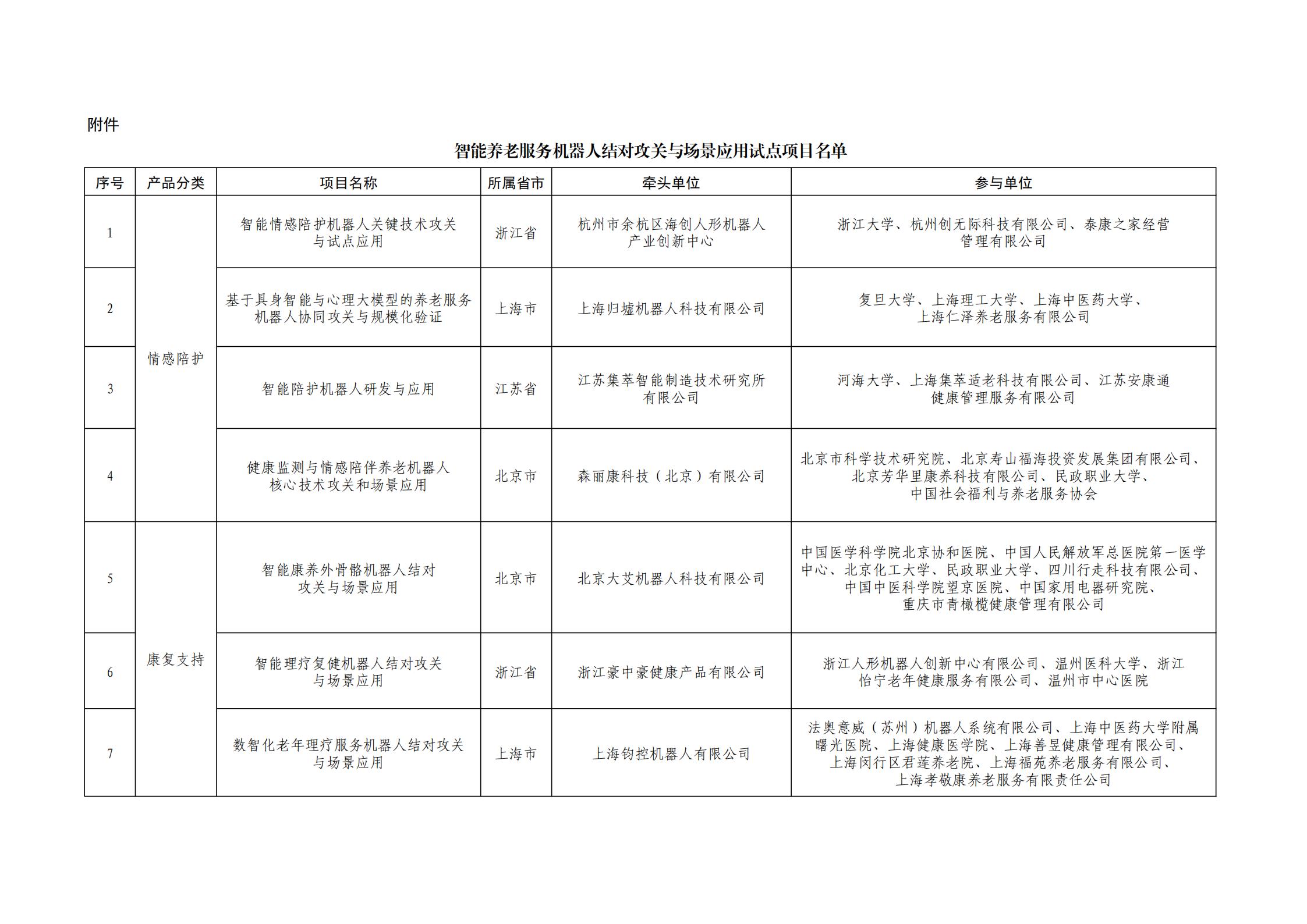 附件:智能养老服务机器人结对攻关与场景应用试点项目名单.pdf