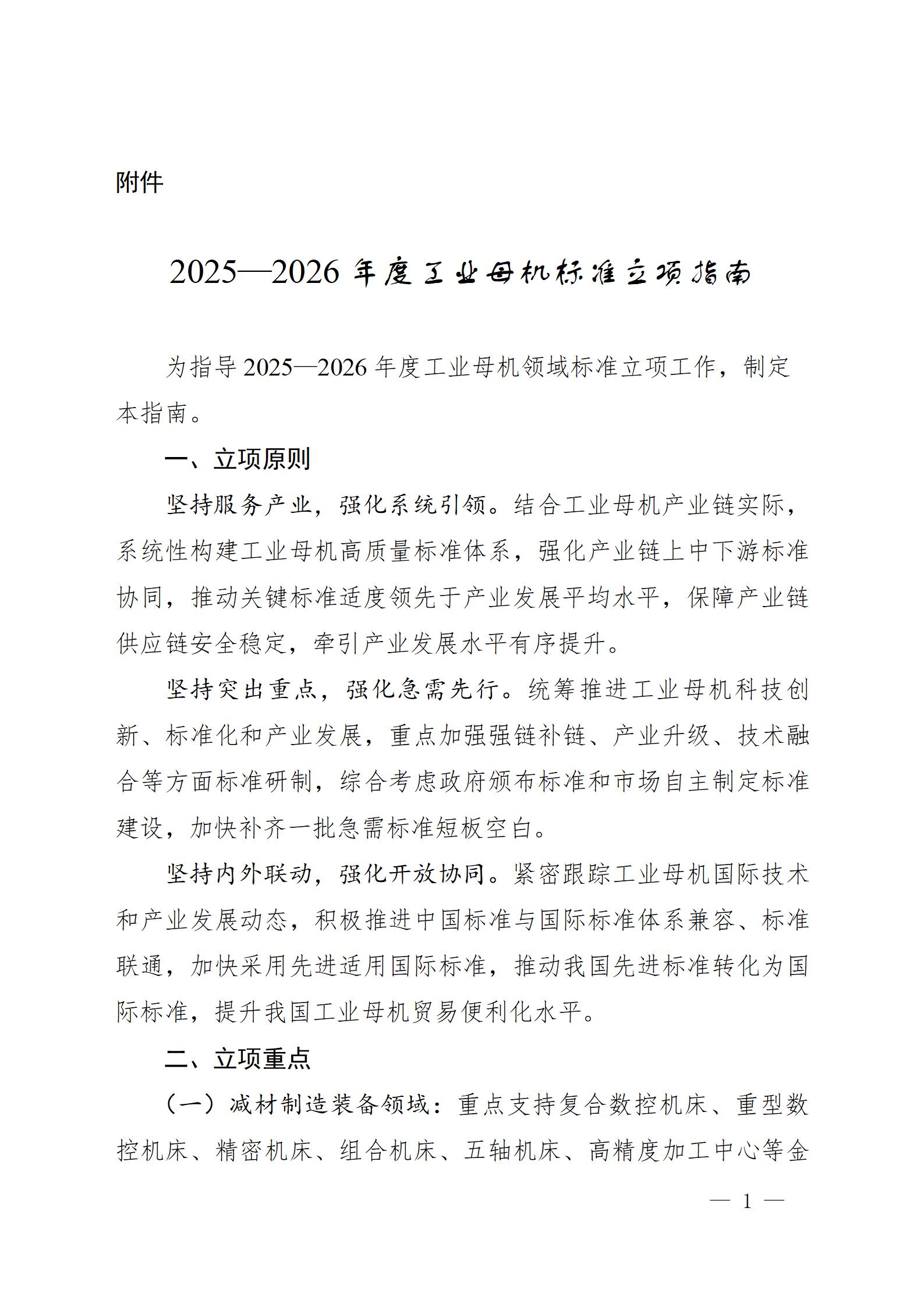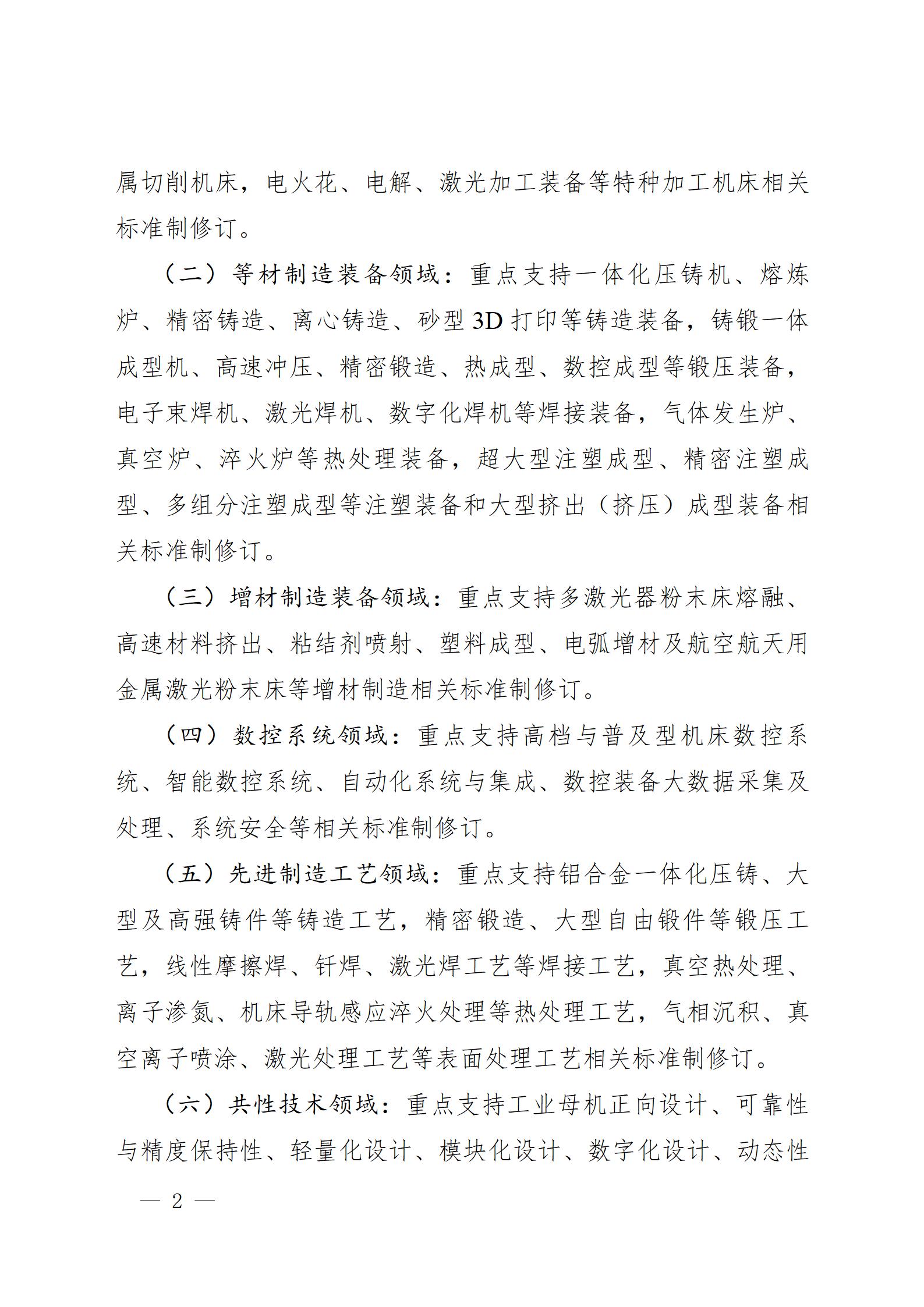 围绕高端复合数控机床、一体化压铸、精密锻造、复合增材制造、高端注塑成型、高档数控系统、高性能功能部件等重点方向,聚焦强链补链、产业升级等需求,加快推动一批重大科研成果转化为标准,加紧研制一批产业链急需标准,采信一批优秀团体标准,推广先进技术方案在产业应用,填补产业链上中下游关键环节标准空白。
