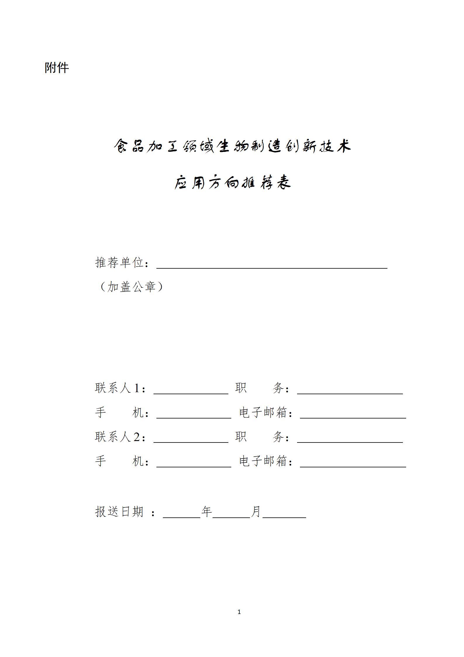 两部门关于开展食品加工领域生物制造创新技术应用方向征集工作的通知