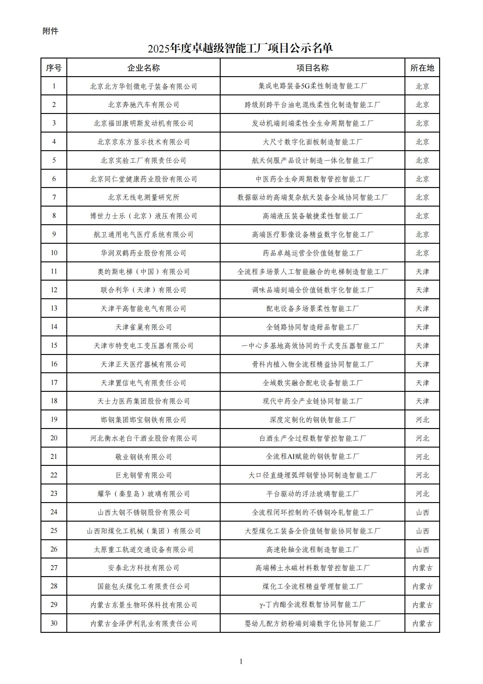 附件:2025年度卓越级智能工厂项目公示名单