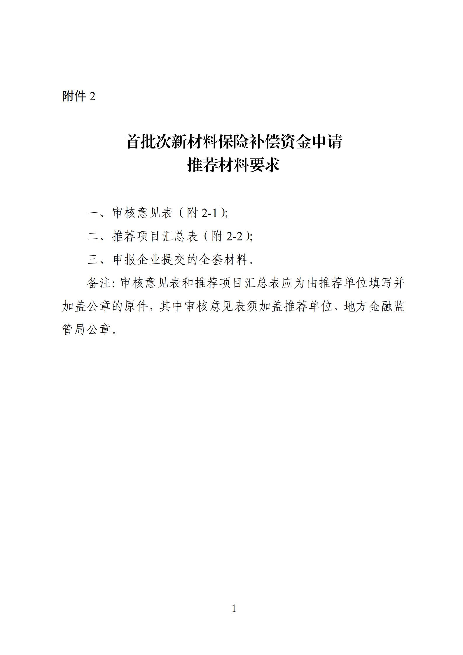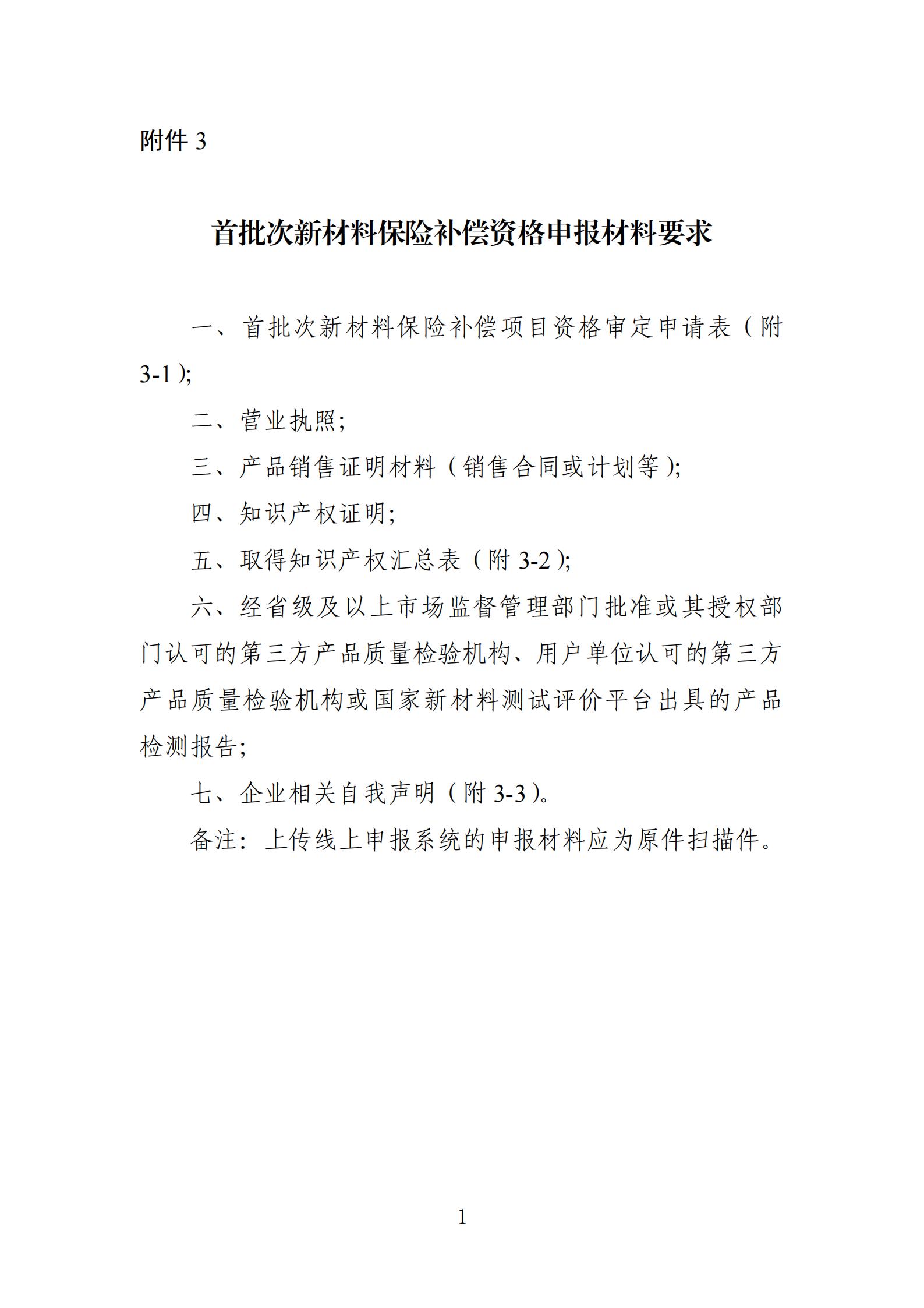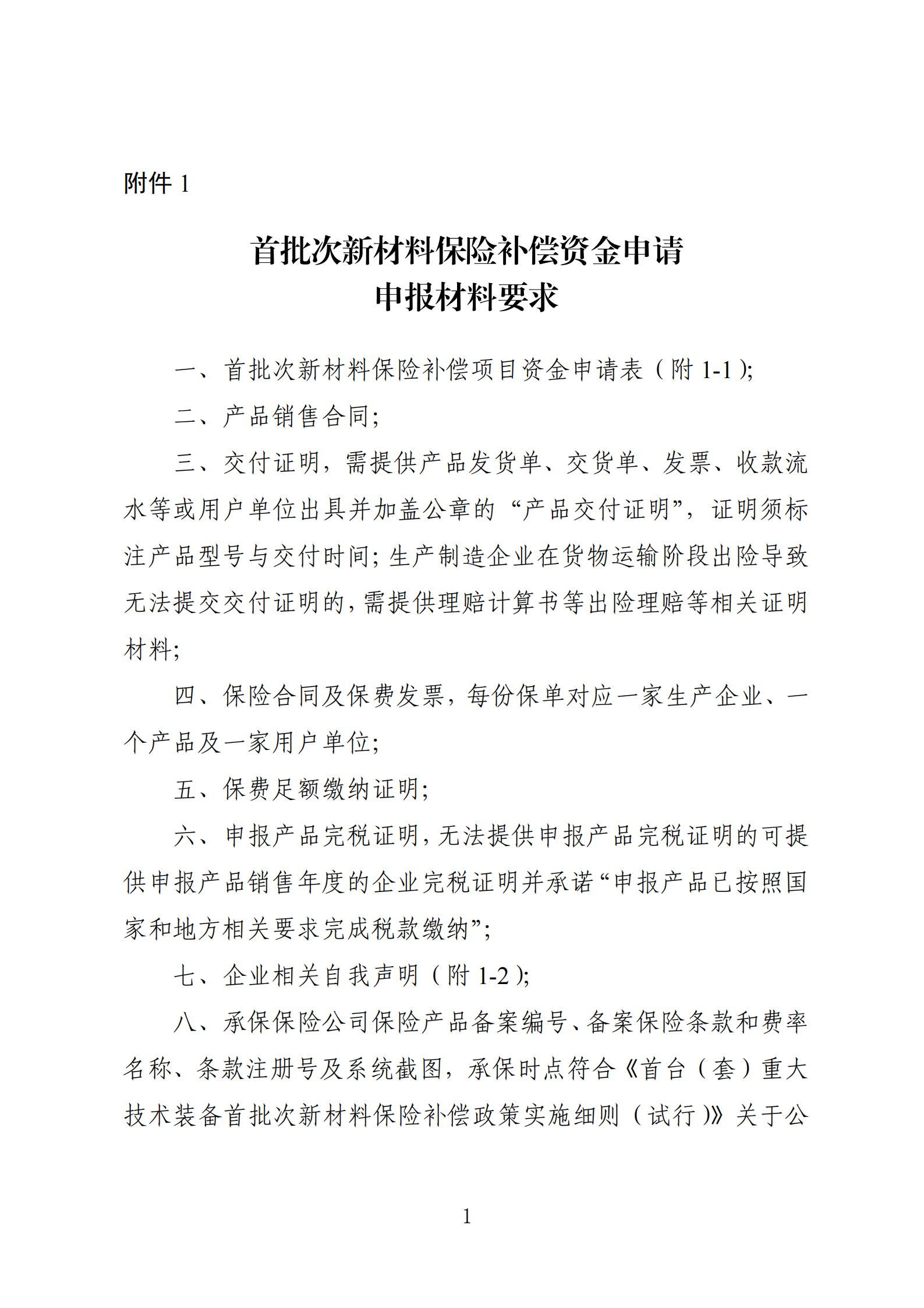 附件:1.首批次新材料保险补偿资金申请申报材料要求