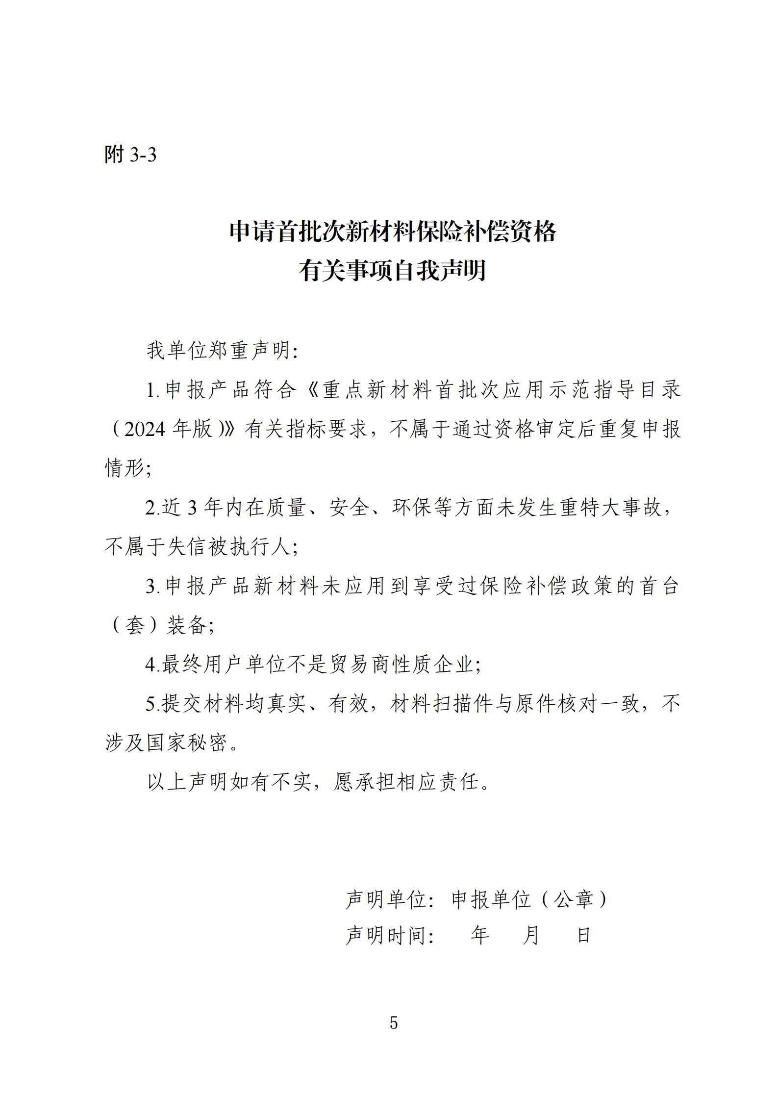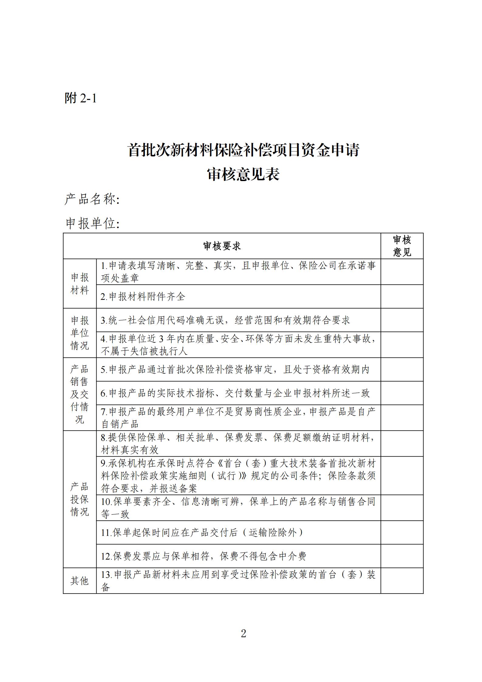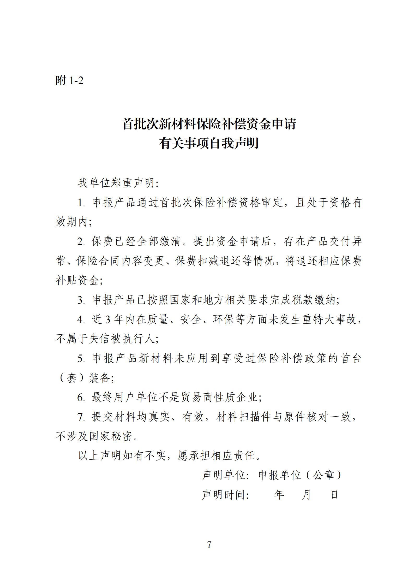 附件:1.首批次新材料保险补偿资金申请申报材料要求