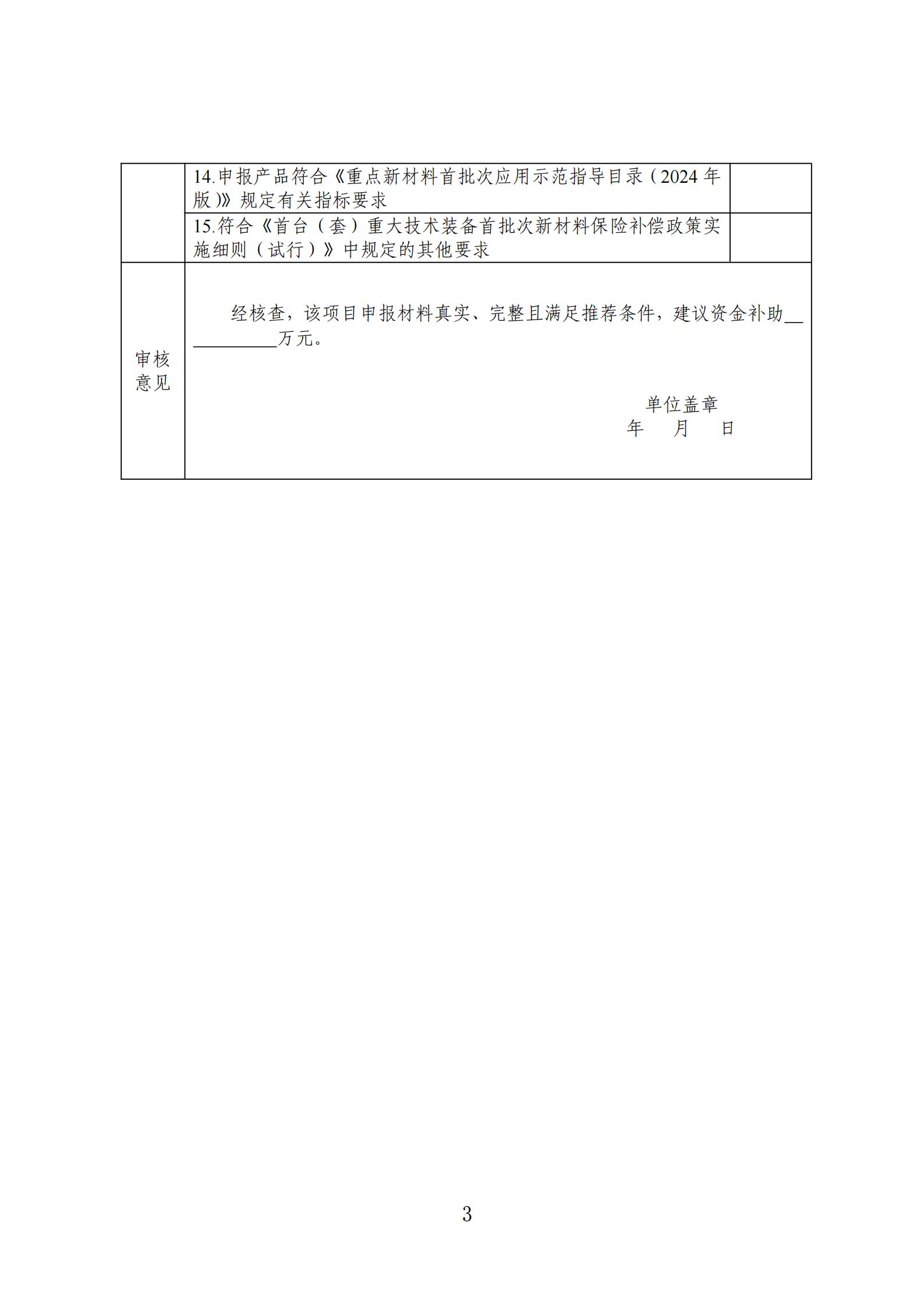 2.首批次新材料保险补偿资金申请推荐材料要求