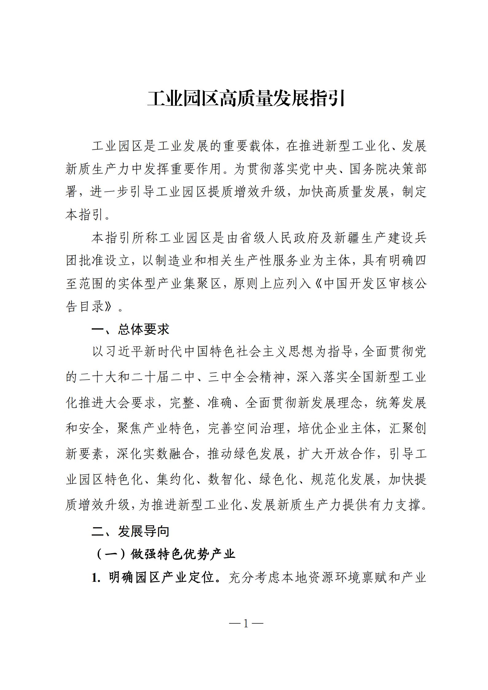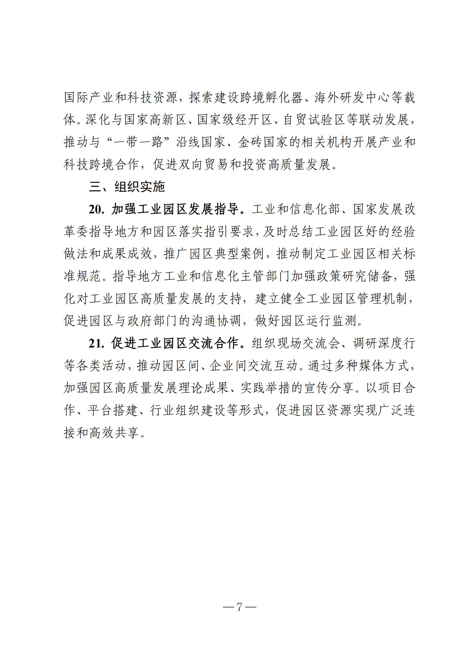 工业和信息化部 国家发展改革委关于印发《工业园区高质量发展指引》的通知