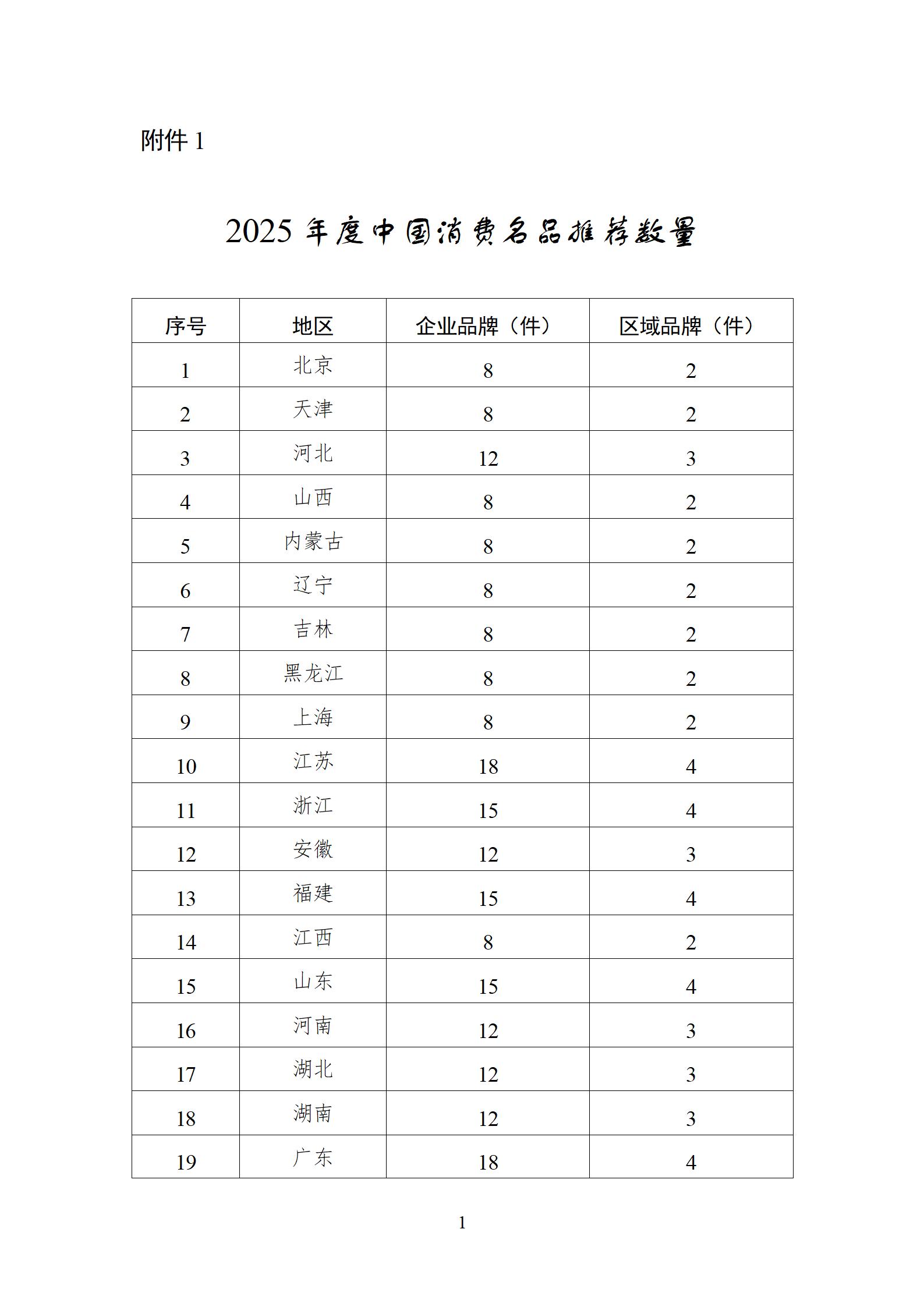各地消费名品推荐数量见附件,适老化产品、助残产品、妇幼产品等特定人群适用产品推荐数量不受限制。