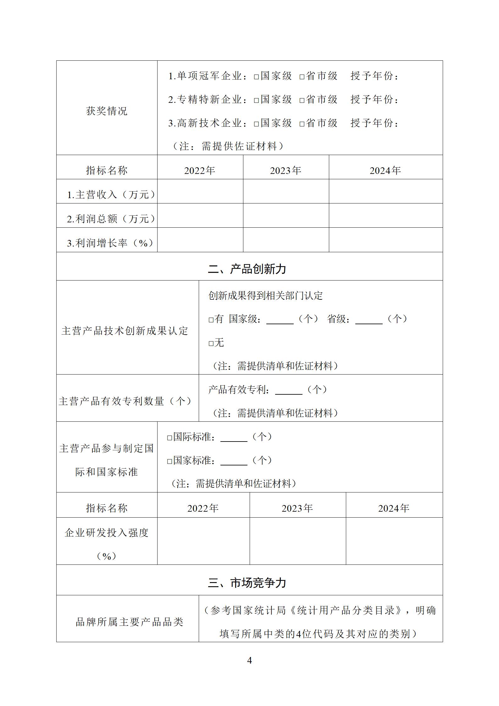 (一)基本条件。企业品牌:申报主体应为在中华人民共和国境内注册登记的企业单位;具有独立法人资格,企业营业收入在2亿以上,近3年经营状况良好,在信用、质量、安全和环保等方面无不良记录;自主创建申报品牌,拥有商标所有权、且在有效期内。区域品牌:申报主体应为中华人民共和国境内的地级或县级行政区,近3年无重大质量安全等事故。