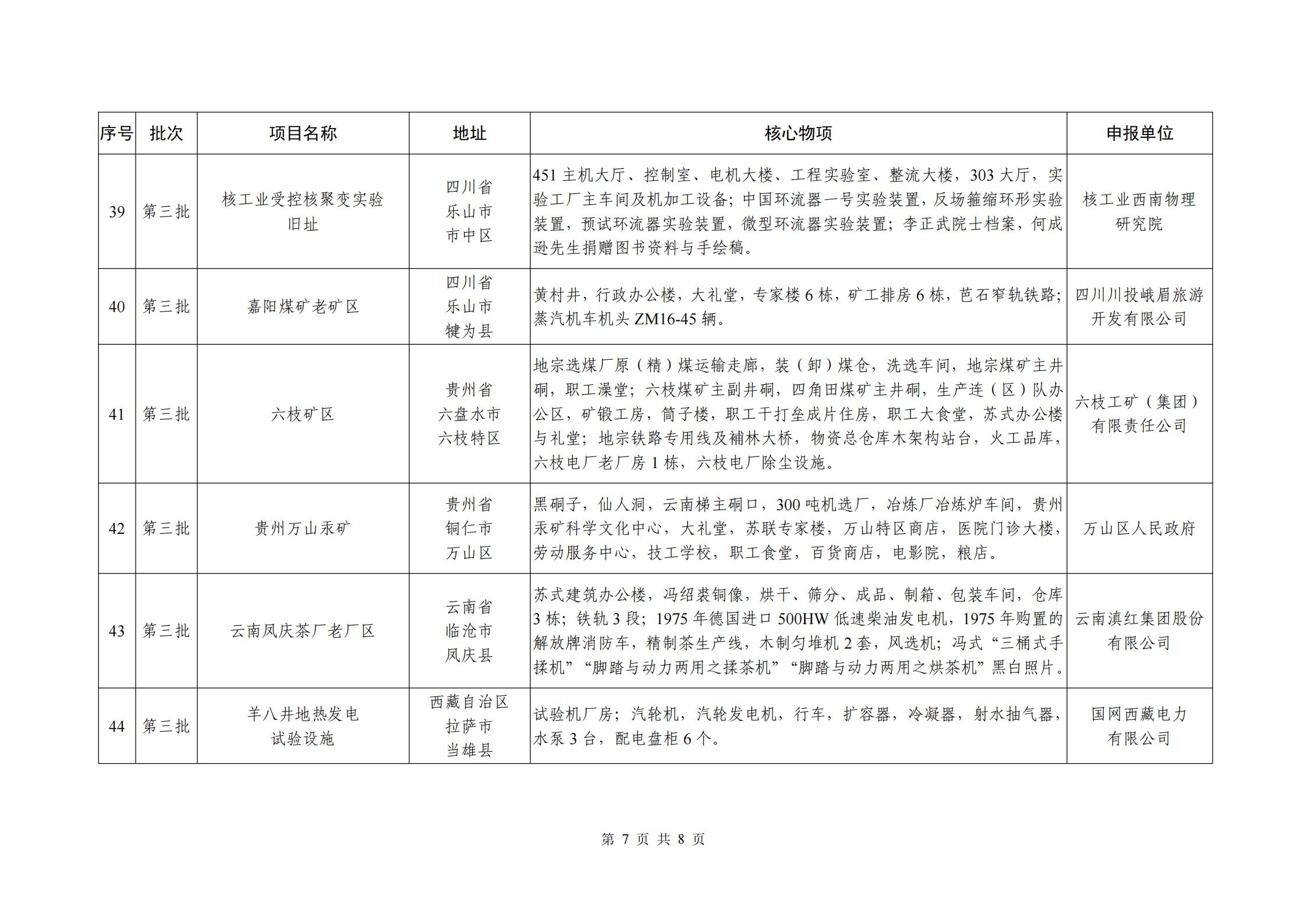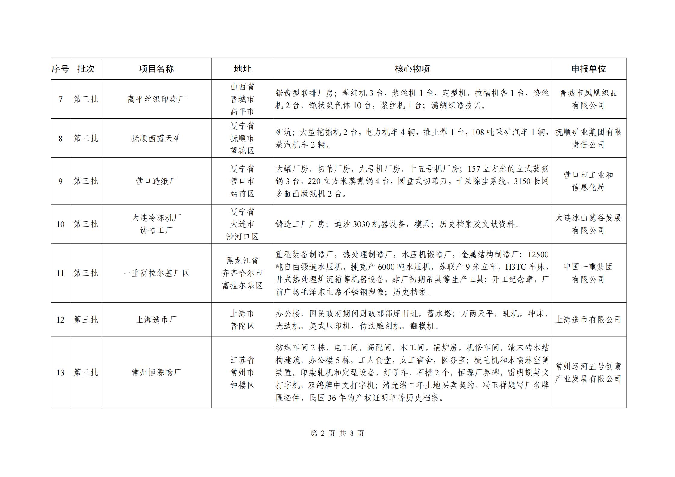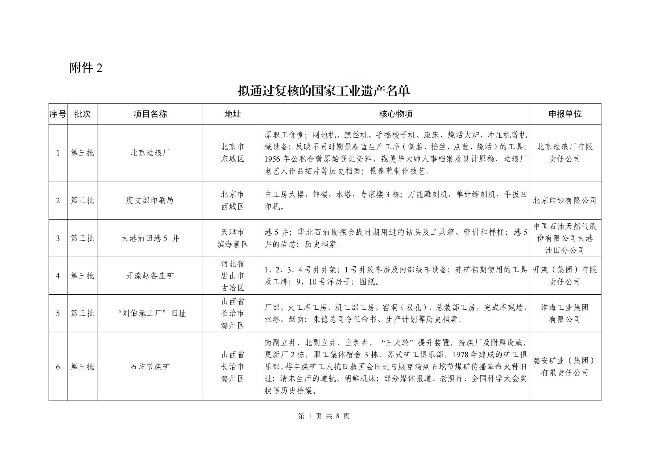 关于第七批国家工业遗产拟认定名单和第三批国家工业遗产拟通过复核名单的公示