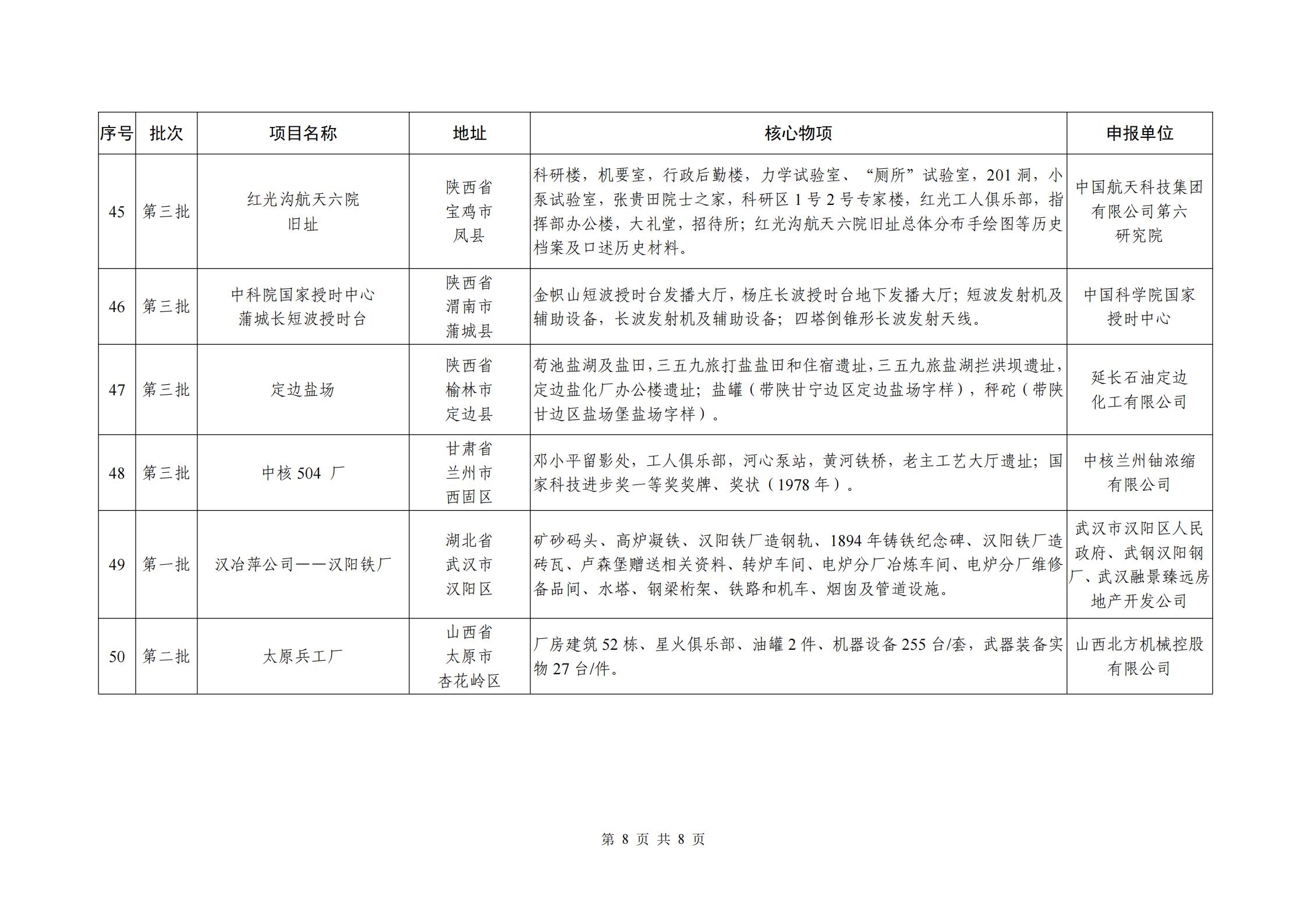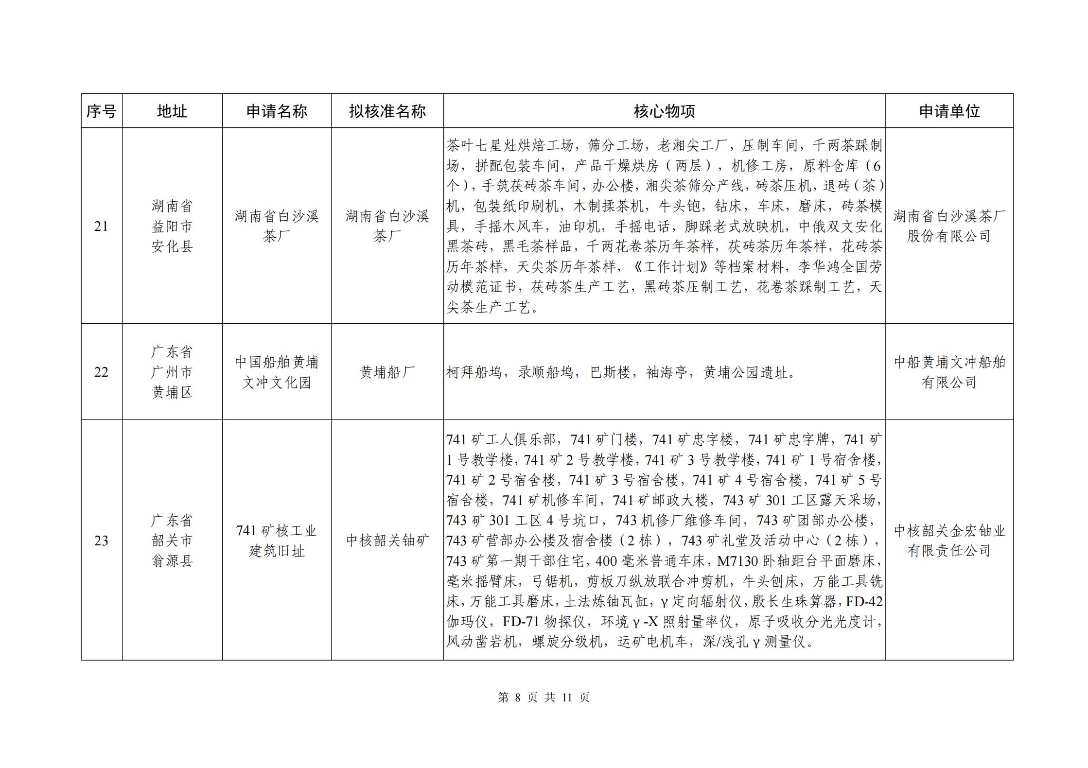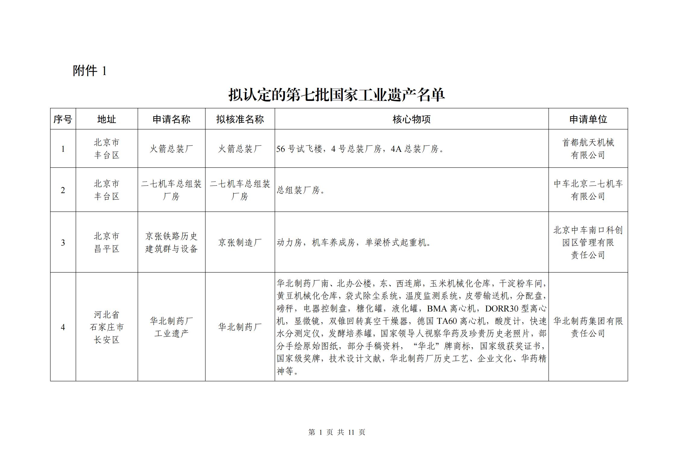 关于第七批国家工业遗产拟认定名单和第三批国家工业遗产拟通过复核名单的公示