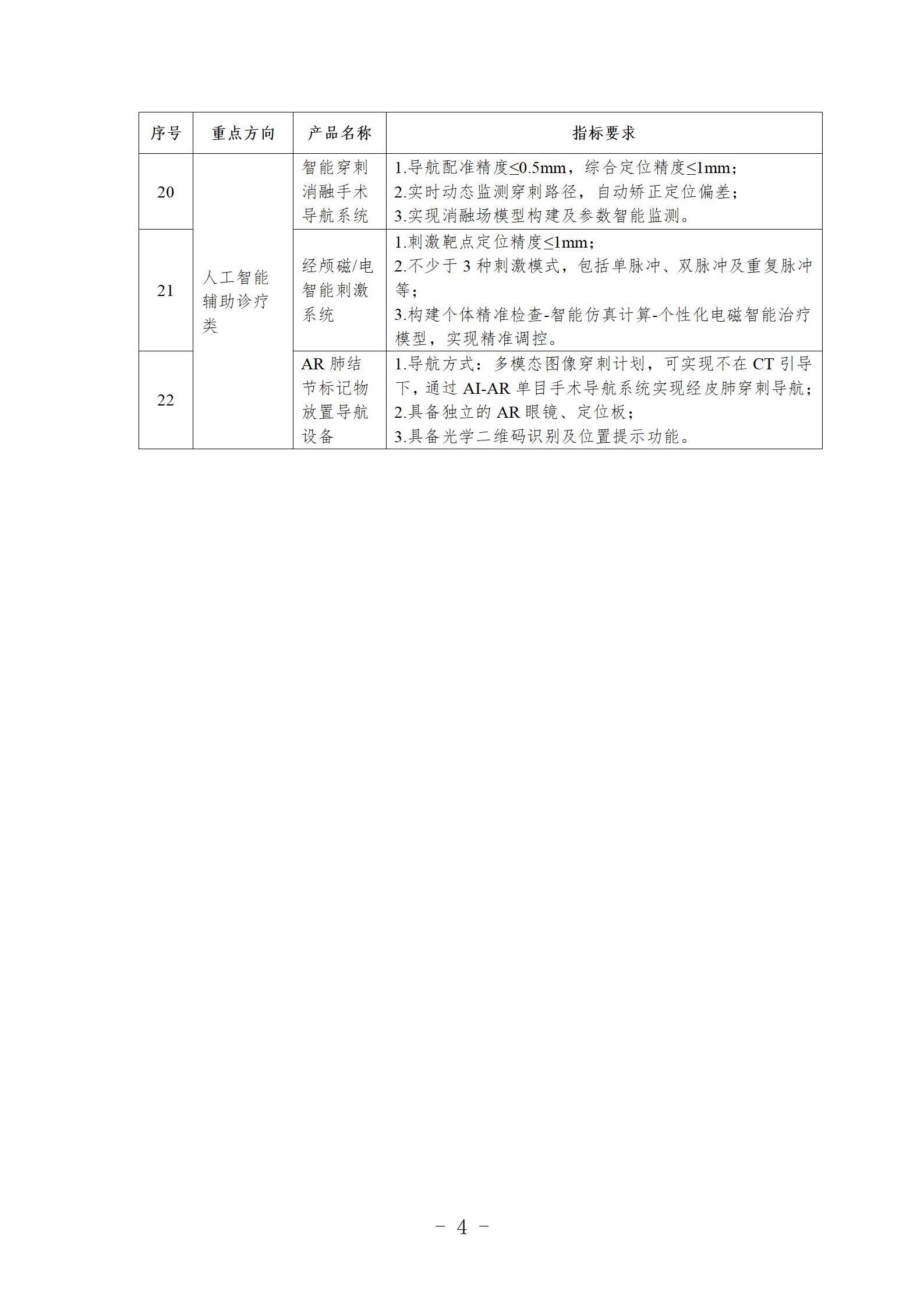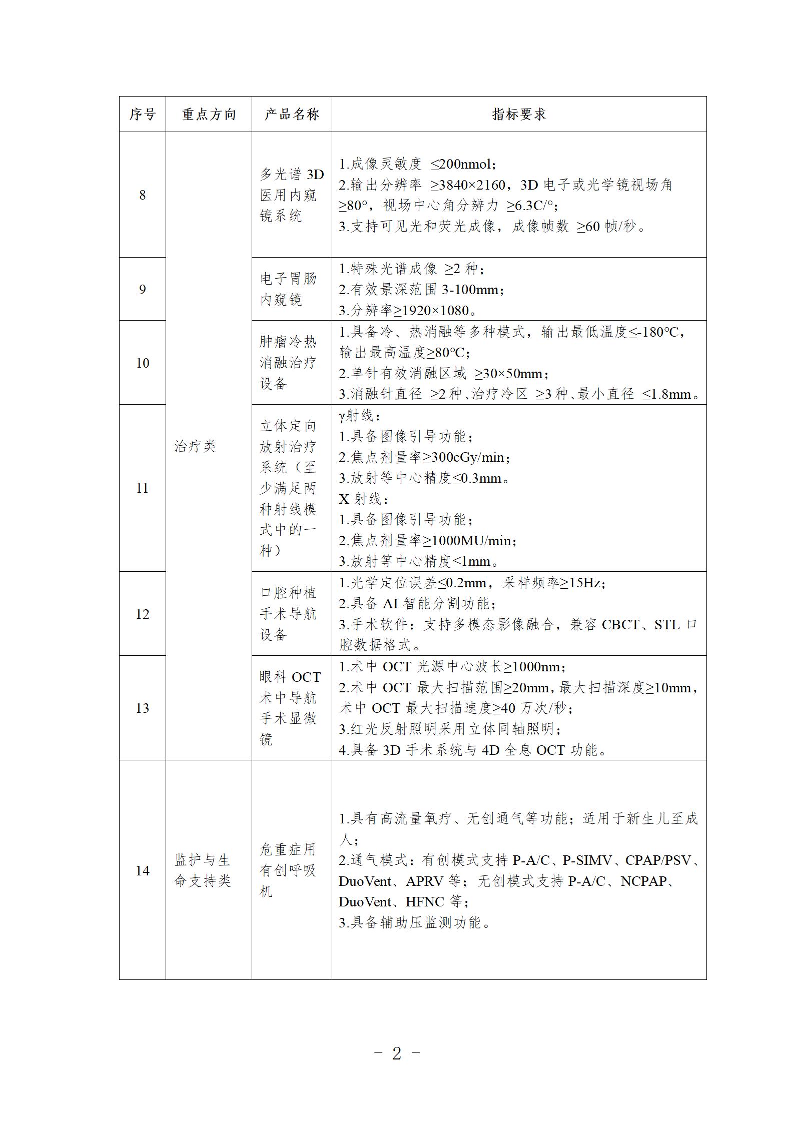 面向高端医疗装备重点产品和典型场景,遴选一批技术创新水平与临床应用水平处于全国前列,对医工协同创新、中试验证、临床研究、迭代升级与推广应用等具有较强引领带动作用的项目。本年度重点开展5类重点产品(见附件1)和4类典型场景(见附件2)的推广应用。
