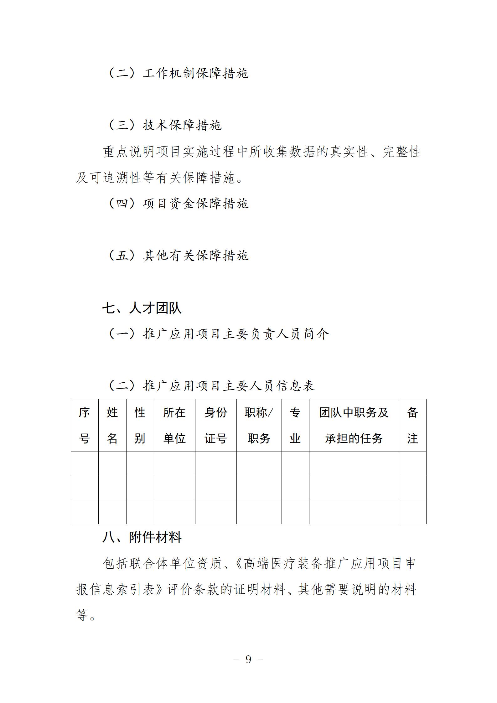 (二)组织保障要求。医工联合体应建立较为完善的医疗装备研制生产、临床研究管理和资金保障体系,医疗机构重点保障高端医疗装备临床应用研究及推广的技术和环境条件,医疗装备生产企业重点保障高端医疗装备运行安全及改进提升的技术和软硬件条件。