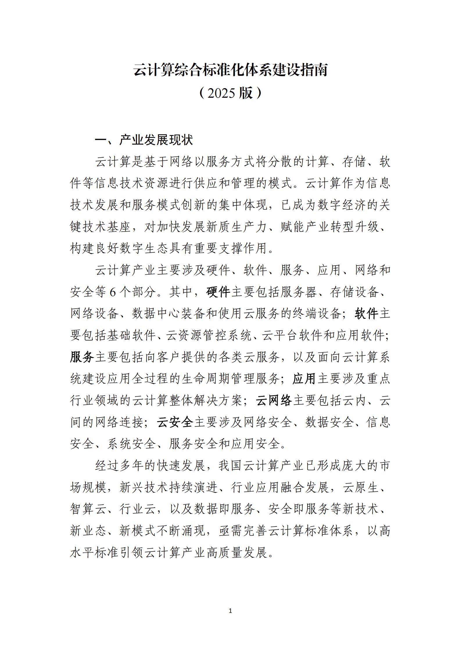 两部门关于印发《云计算综合标准化体系建设指南(2025版)》的通知