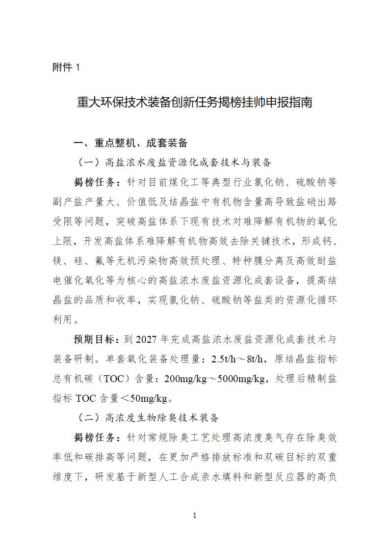 关于组织开展2025年重大环保技术装备创新任务揭榜挂帅工作的通知