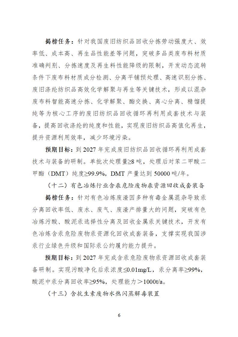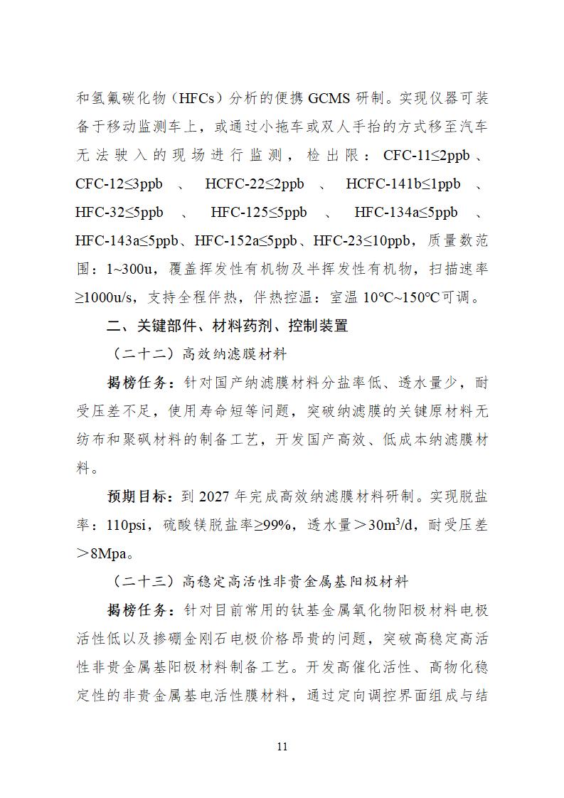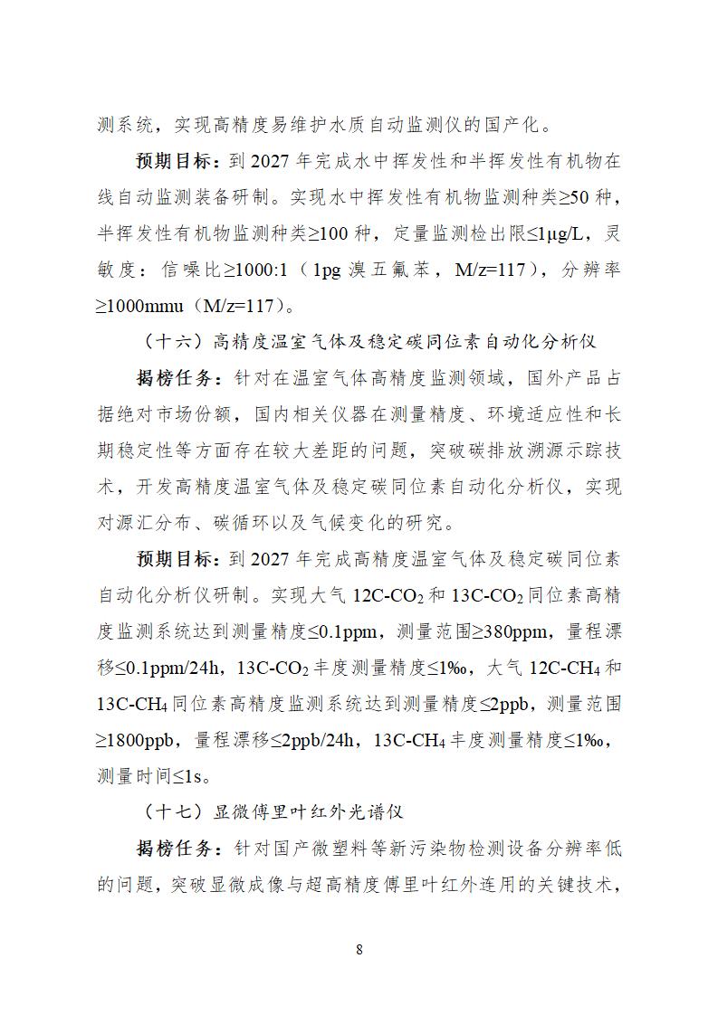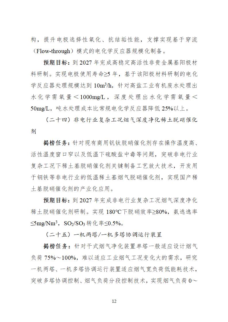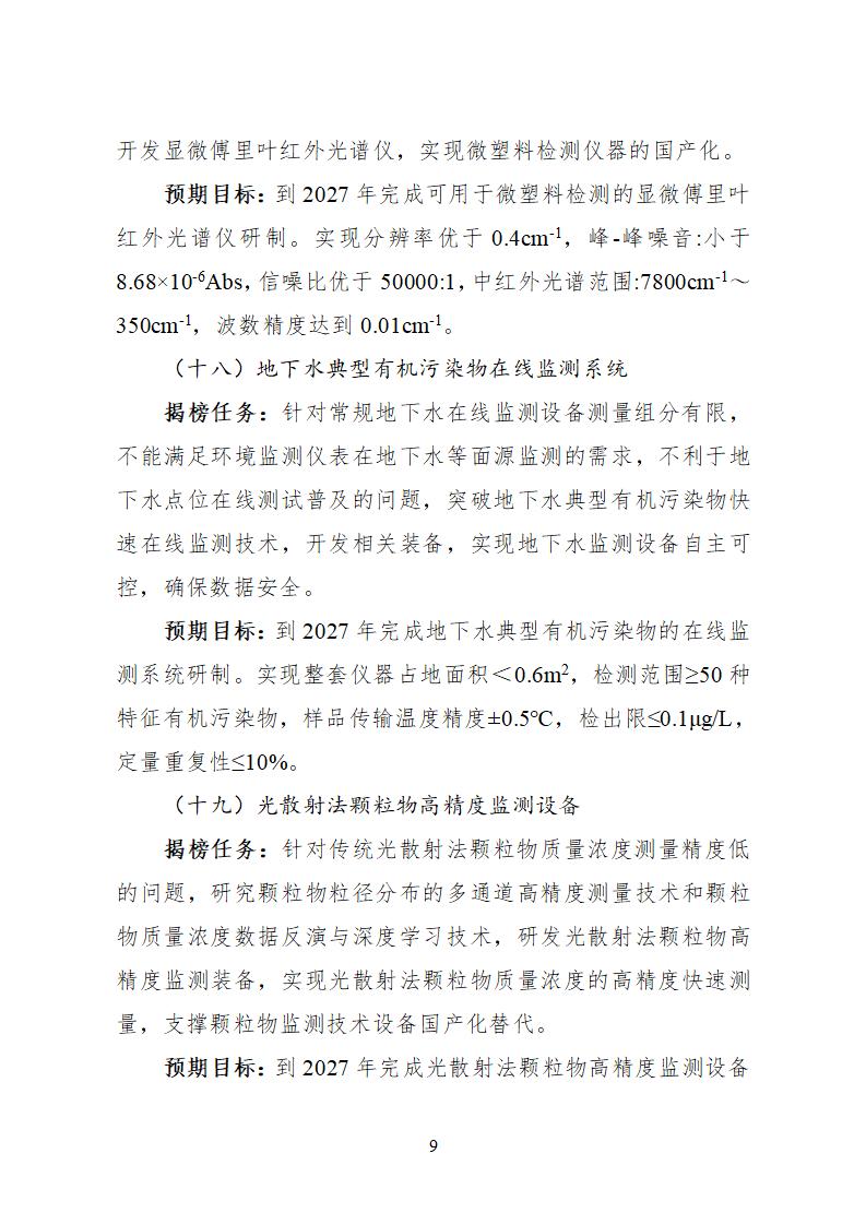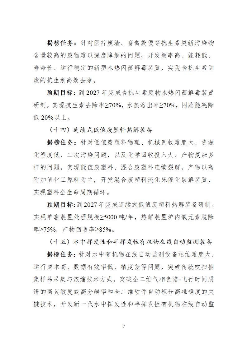 面向大气污染防治、水污染防治、固体废物处理、环境监测专用仪器仪表领域实际需求,聚焦高盐废水处理回用、干式烟气净化、持久性有机污染物识别监测等难点问题,共设立28项任务榜单(详见附件1)。