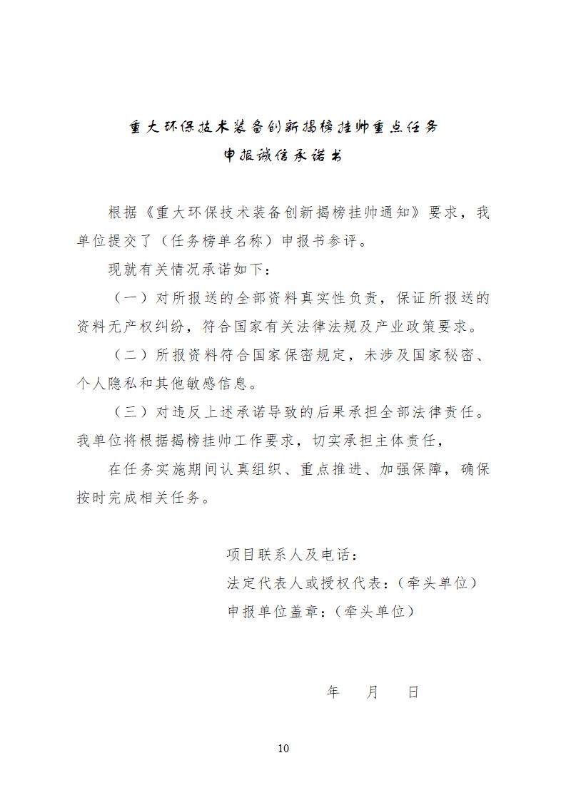 为贯彻落实《促进环保装备制造业高质量发展的若干意见》,加快推动我国环保技术装备创新发展,提升环保装备全产业链竞争优势,现组织开展重大环保技术装备创新任务揭榜挂帅工作。有关事项通知如下: