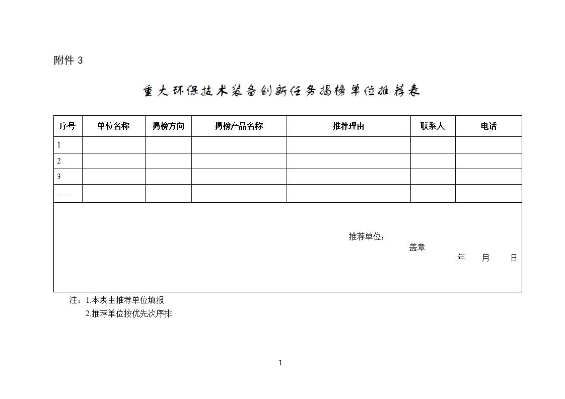 (一)申请揭榜。请各省级工业和信息化主管部门根据推荐要求,分别组织本地区环保装备的研发或生产单位通过“工业节能与绿色发展管理平台”(https://green.miit.gov.cn)填写申报书(附件2),并通过平台对申报材料进行汇总、审核后,形成推荐意见,填写重大环保技术装备创新任务揭榜单位推荐表(附件3)并将正式推荐意见于2025年11月14日前通过平台提交。