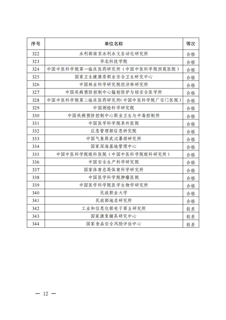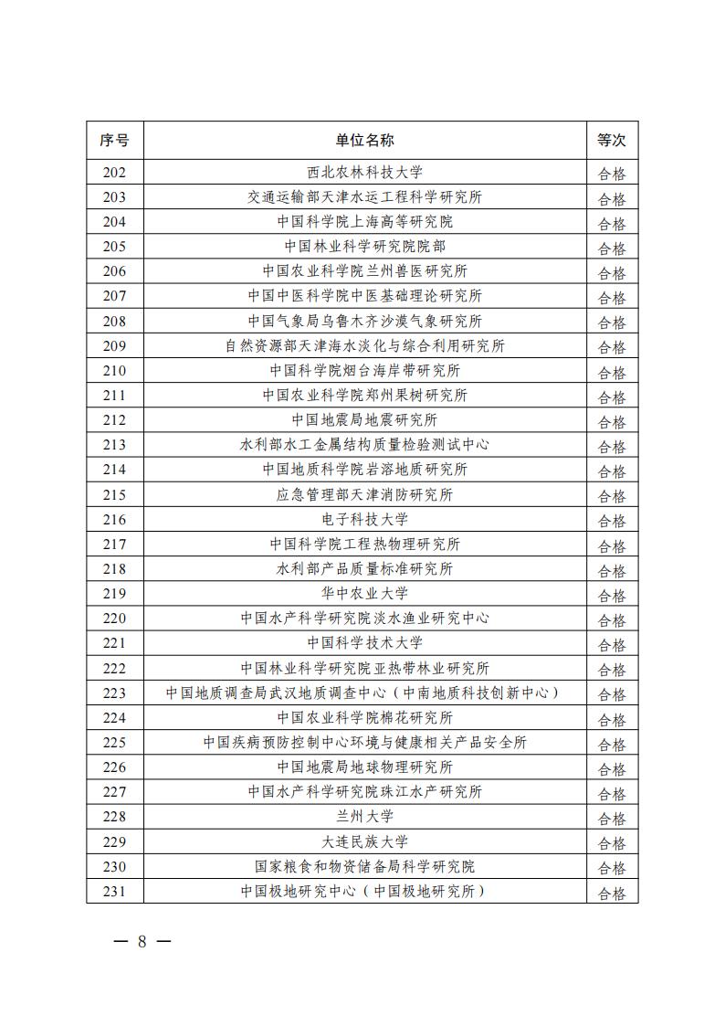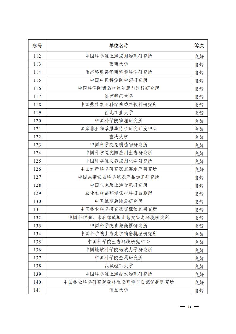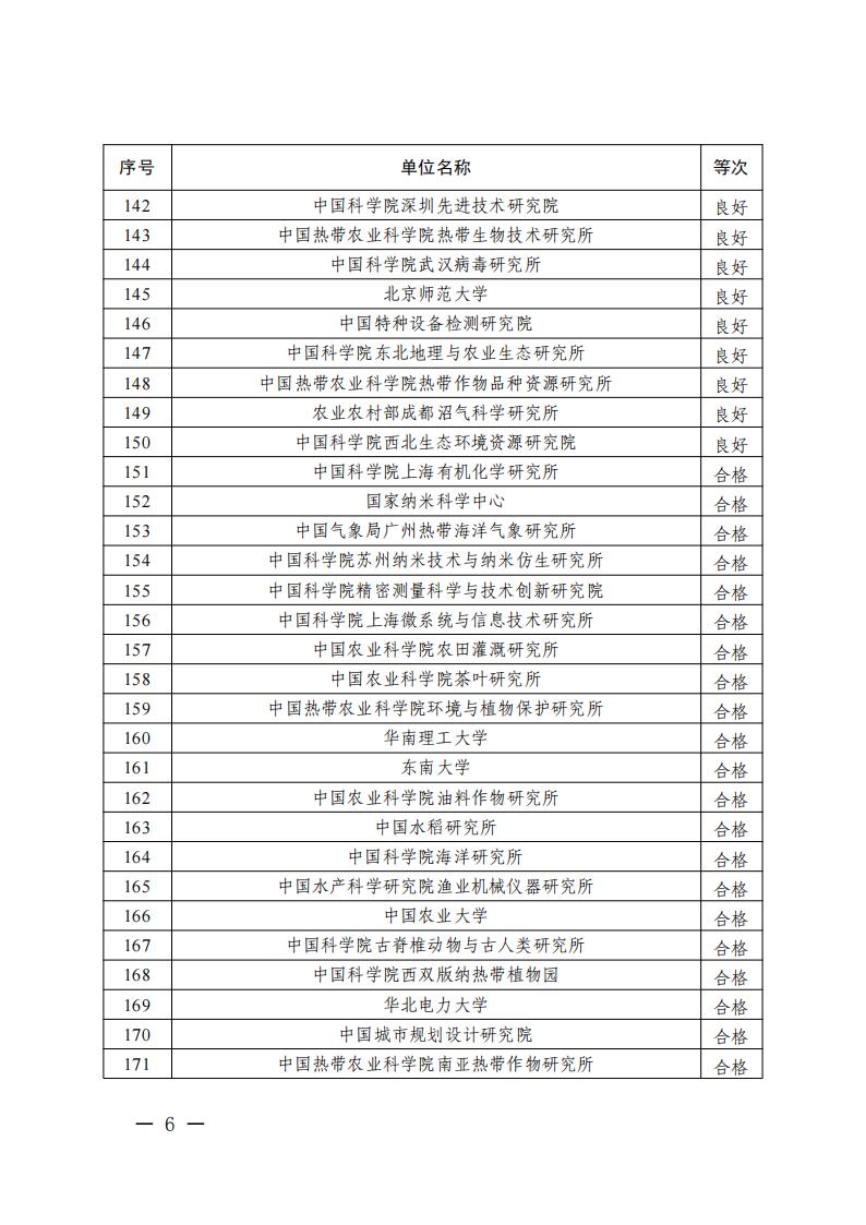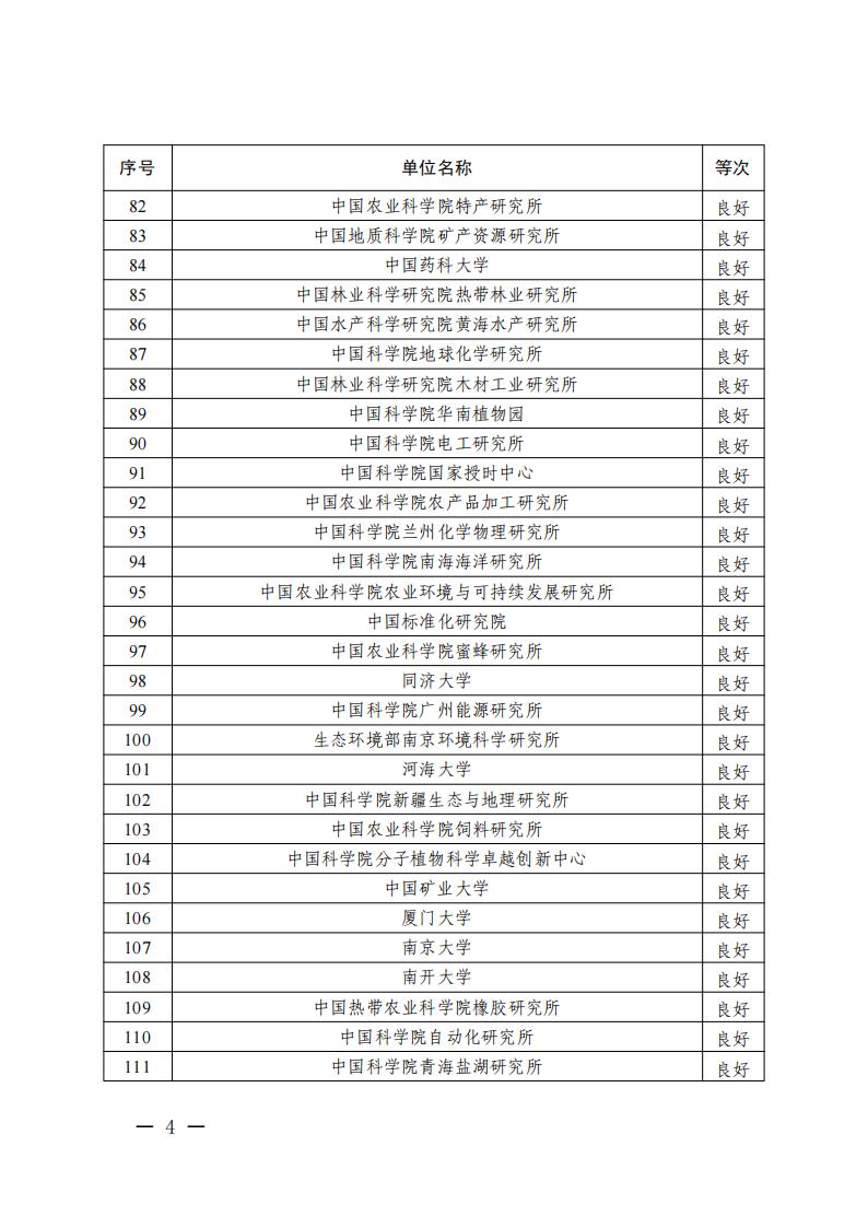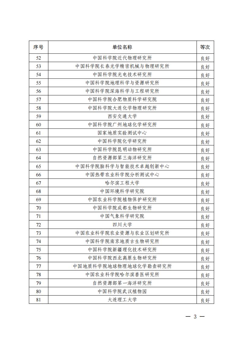 按照《细则》相关要求,形成了评价考核结果。中国科学院生物物理研究所等50个单位管理制度规范、科研仪器设备运行使用效率高、对外开放共享成效明显,考核结果为优秀。中国科学院亚热带农业生态研究所等100个单位管理制度比较健全、运行使用效率较高、对外开放共享成效较好,考核结果为良好。中国科学院上海有机化学研究所等191个单位达到了开放共享的基本要求,考核结果为合格。工业和信息化部电子第五研究所等3个单位开放共享情况较差,存在开放共享主体责任落实不到位、管理体系不完善、缺乏有效制度、通用仪器运行使用率低等问题,考核结果为较差。具体评价考核结果见附件。