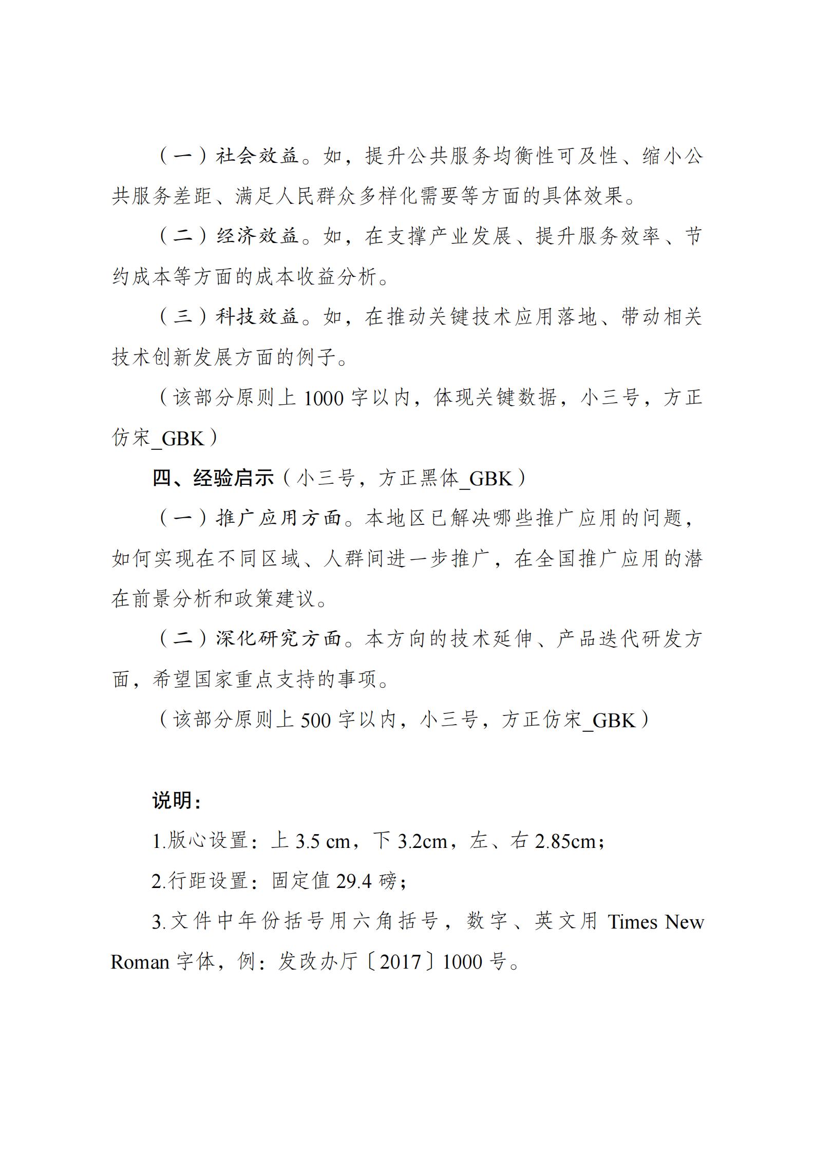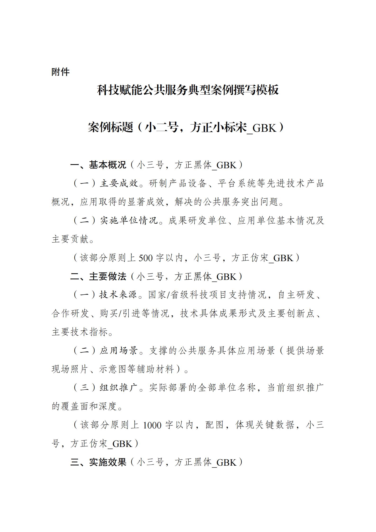 请各地区紧密结合工作实际,深入调查比较,认真做好案例推荐工作,参照模板(见附件)要求编写案例材料,字数原则上控制在3000字左右,文字言简意赅,可配图说明。每个省(区、市)每个领域原则上推荐不超过5个案例,坚持宁缺毋滥,确无相关领域典型案例可不推荐。各省(区、市)发展改革委牵头汇总并初审本地区征集案例,于10月31日前将案例材料报送至国家发展改革委社会发展司,其中,电子版材料在电子邮件标题中注明“XX省(市、区)科技赋能公共服务典型案例”字样。研发单位、应用单位未经省级部门同意,一律不得自行报送案例材料。案例应具备公开条件,不得报送敏感技术细节。