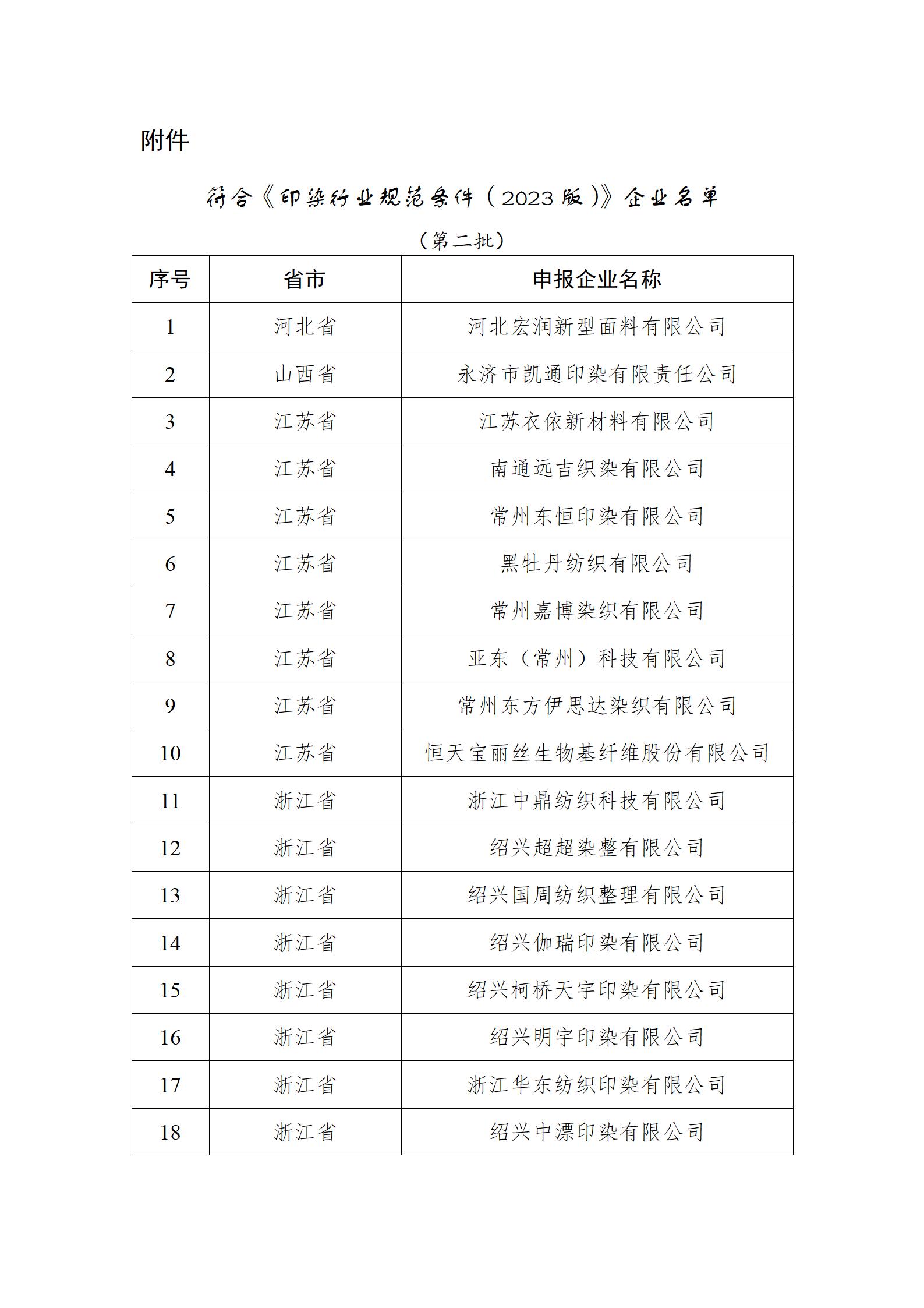 附件:符合《印染行业规范条件(2023版)》企业名单(第二批)