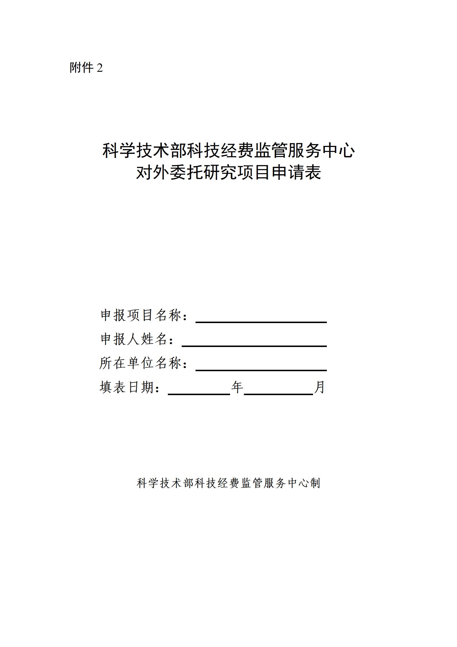 附件2:科学技术部科技经费监管服务中心对外委托研究项目申请表