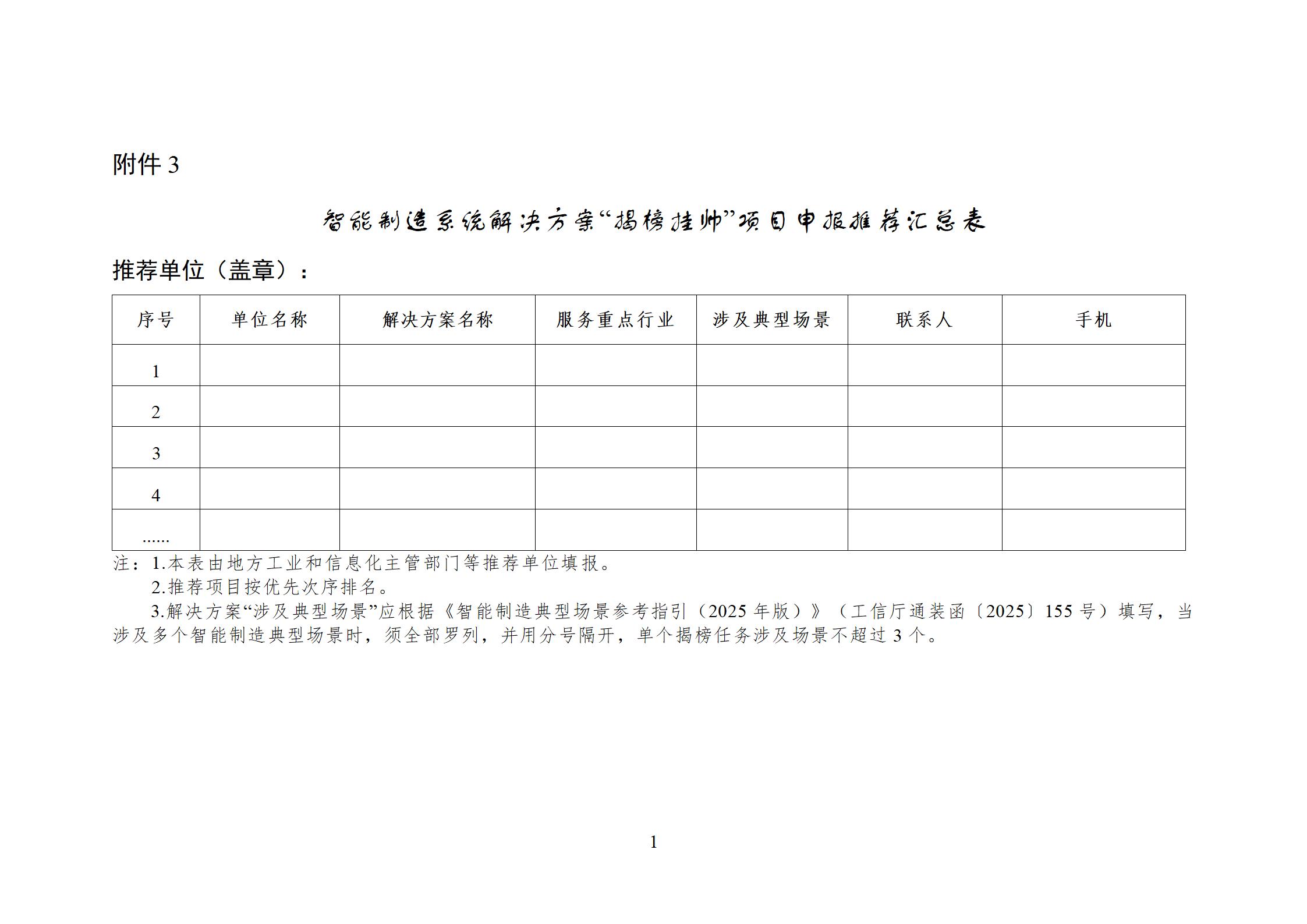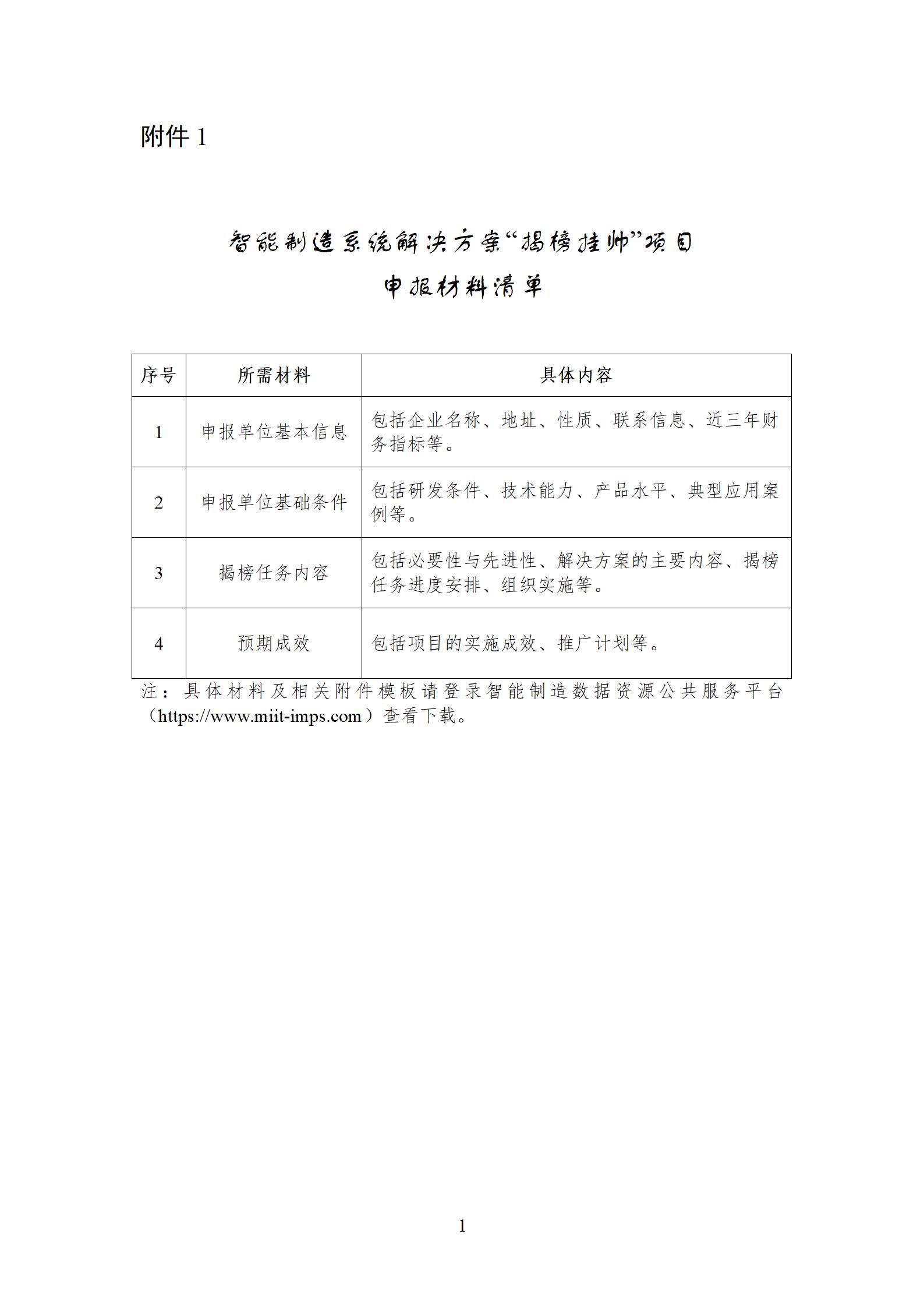 1.申报单位可结合自身实际参照《智能制造系统解决方案“揭榜挂帅”项目申报材料清单》(附件1)编制申报材料,明确智能制造系统解决方案产品和服务揭榜任务,于2025年11月10日前完成线上申报。申报单位应对申报内容的真实性负责,确保申报材料不涉及国家秘密、商业秘密。