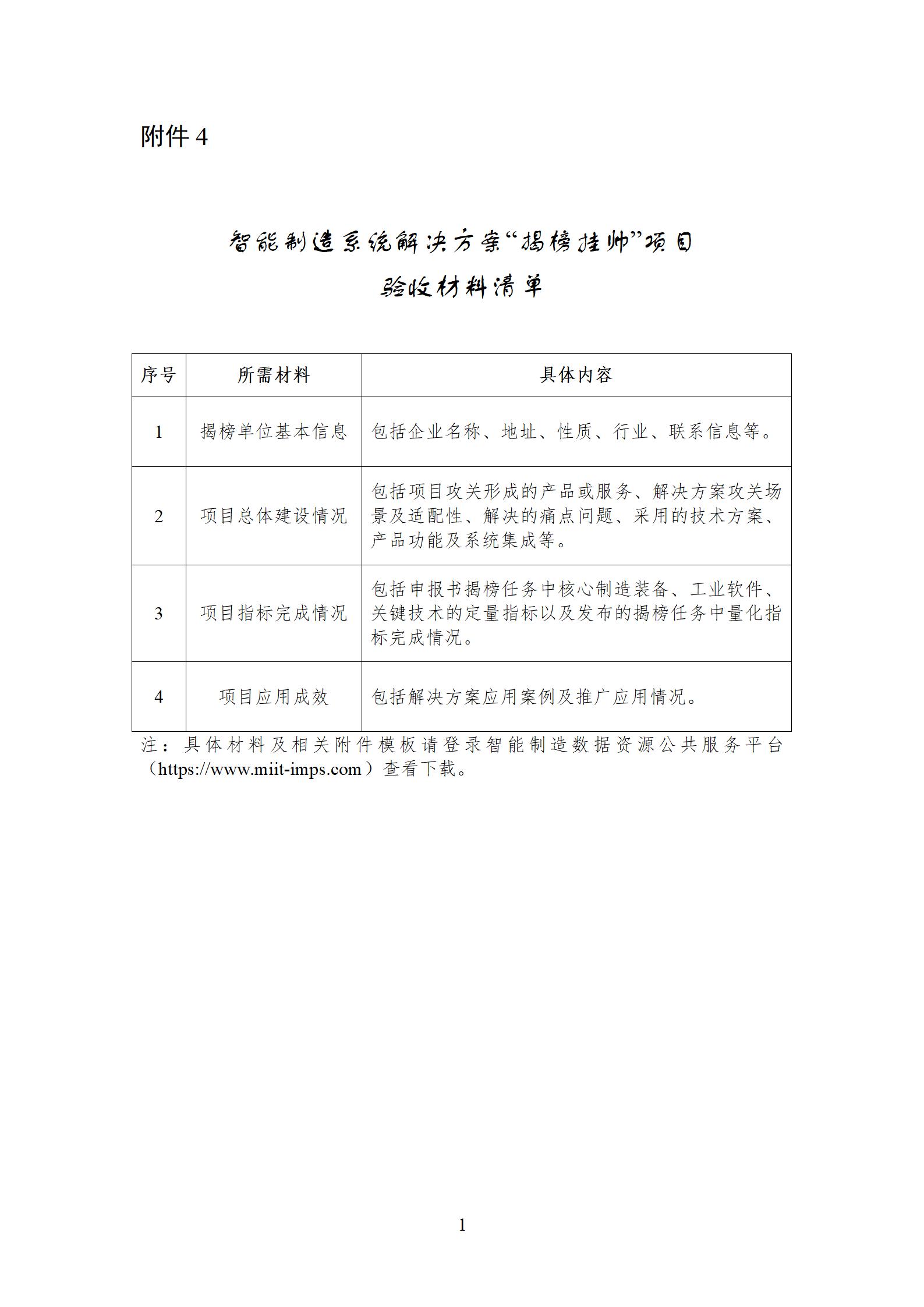 1.提交申请。揭榜单位参照《智能制造系统解决方案“揭榜挂帅”项目验收材料清单》(附件4)编写验收材料并及时完成线上申请。揭榜单位应对验收材料的真实性负责,确保验收材料不涉及国家秘密、商业秘密。