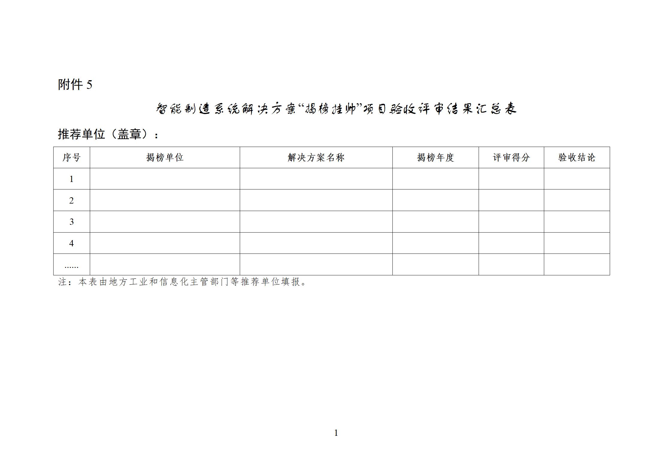 3.材料报送。由推荐单位组织验收的项目,请推荐单位将项目验收结果汇总表(附件5)加盖公章后报送工业和信息化部(装备工业一司)。