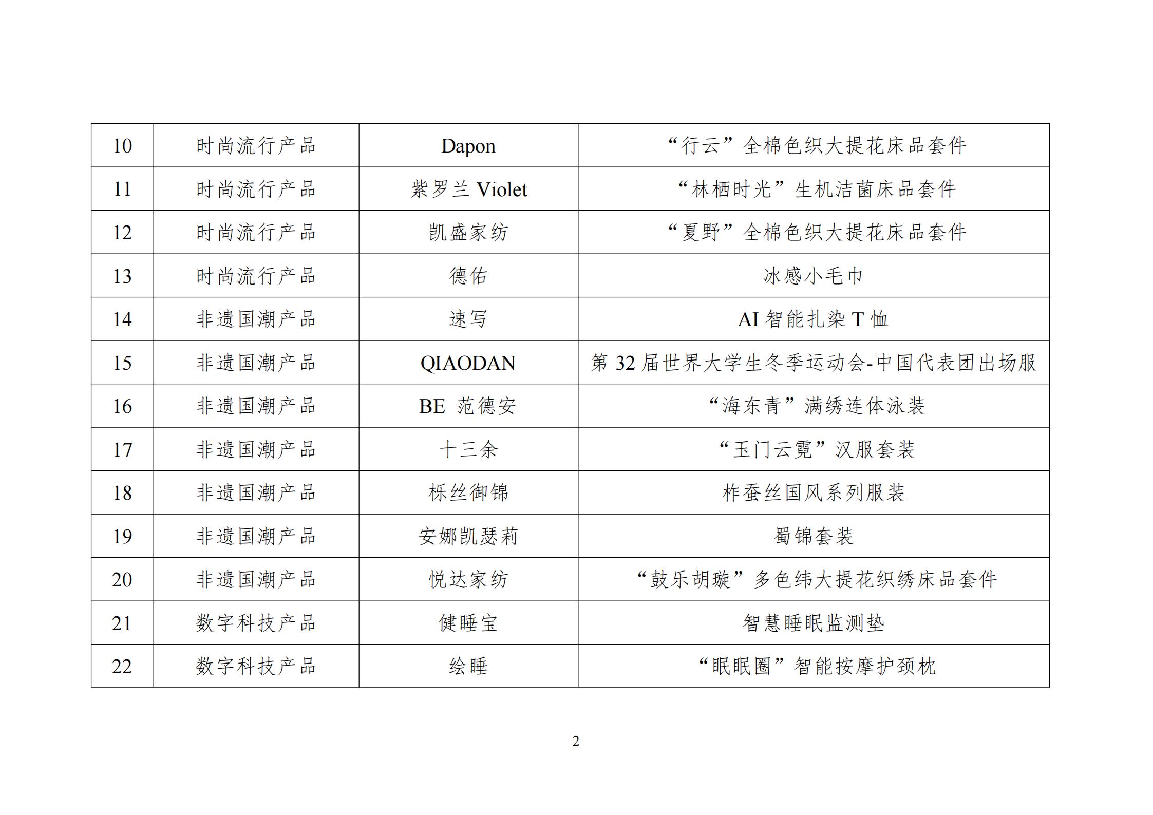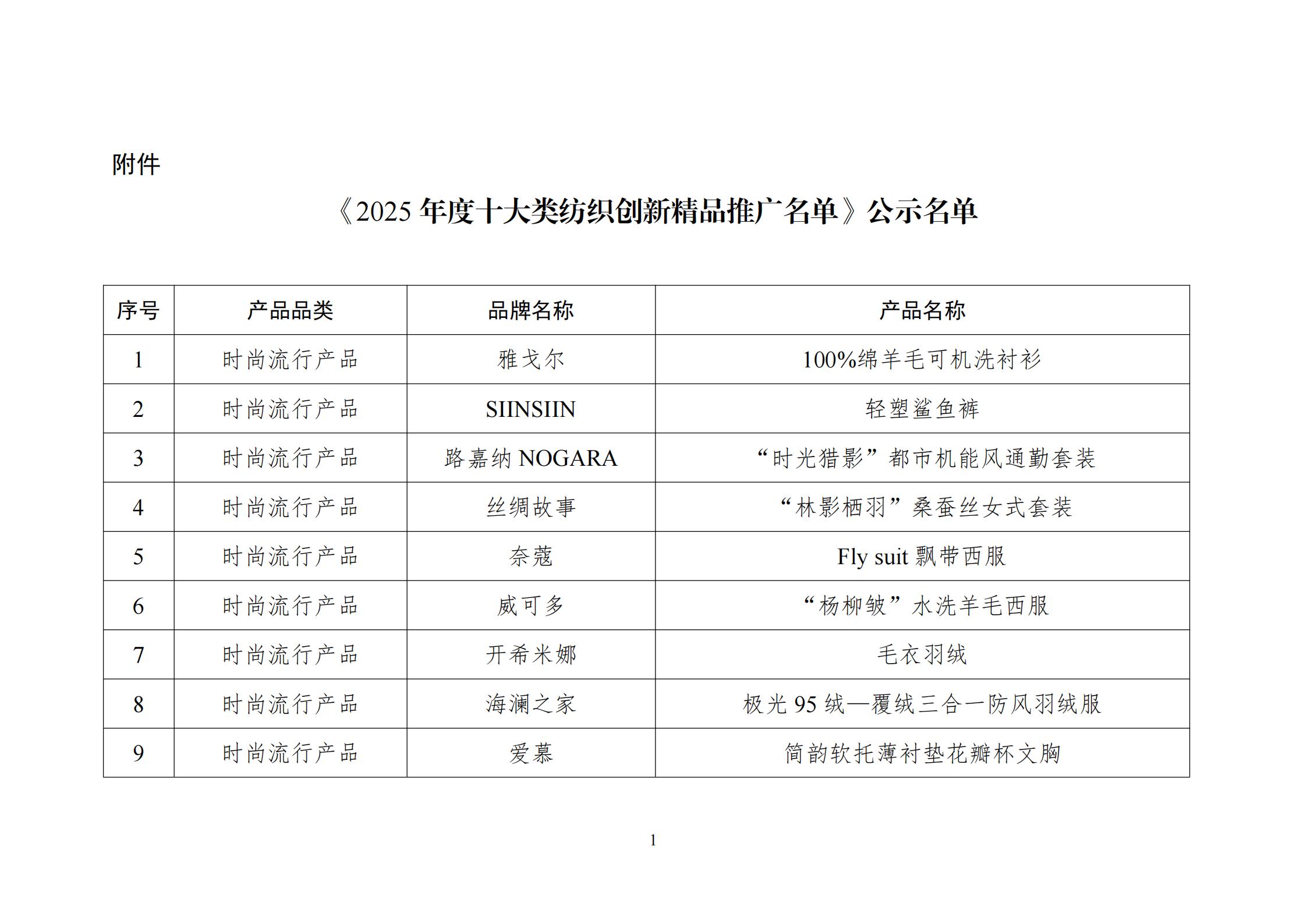 附件:《2025年度十大类纺织创新精品推广名单》公示名单