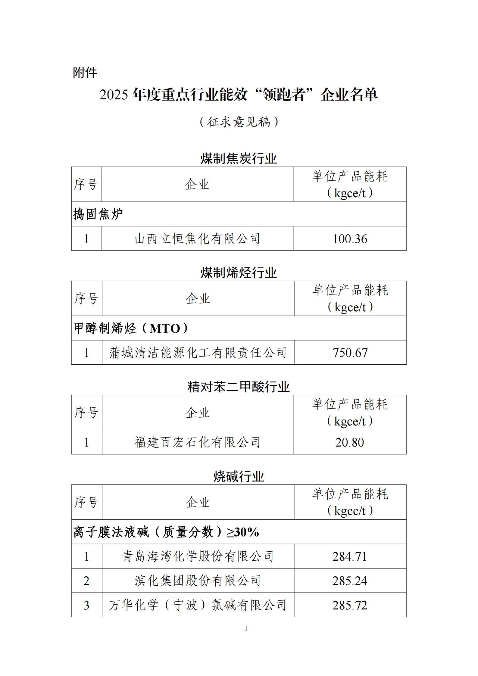 附件:2025年度重点行业能效“领跑者”企业名单(征求意见稿)