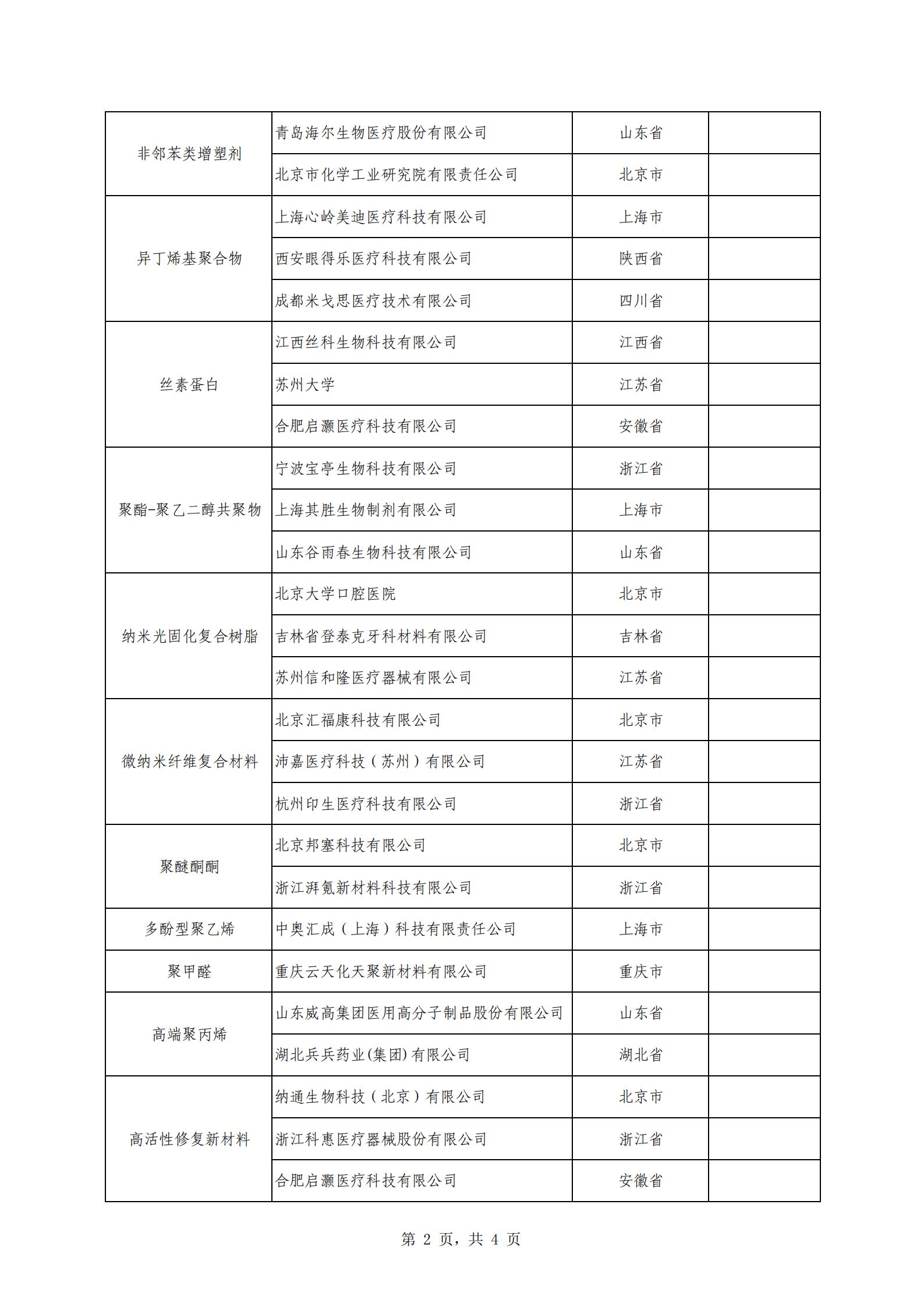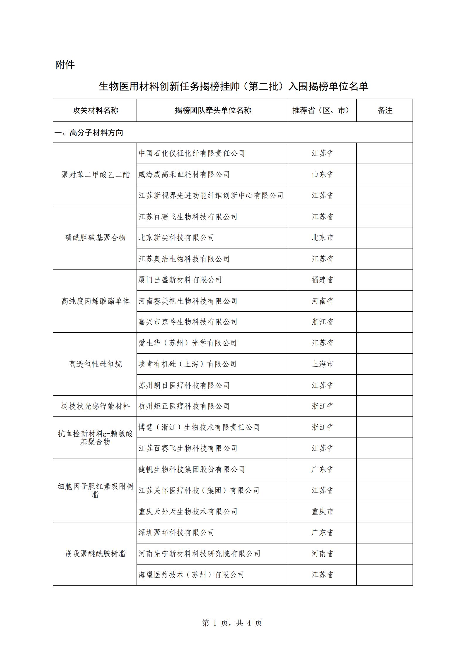 两部门关于公布生物医用材料创新任务揭榜挂帅(第二批)入围揭榜单位的通知