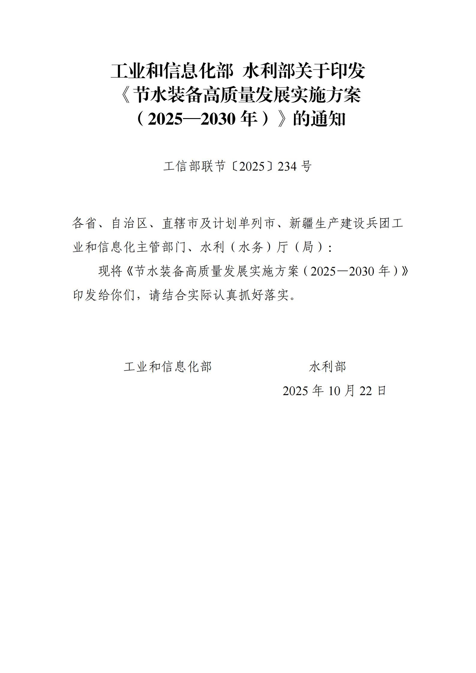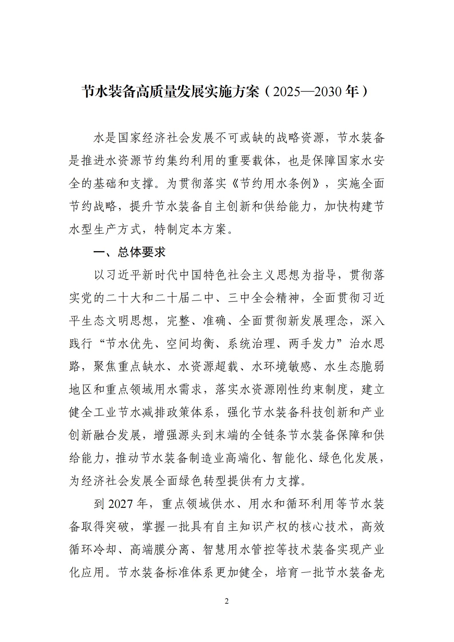 关于印发《节水装备高质量发展实施方案(2025—2030年)》的通知