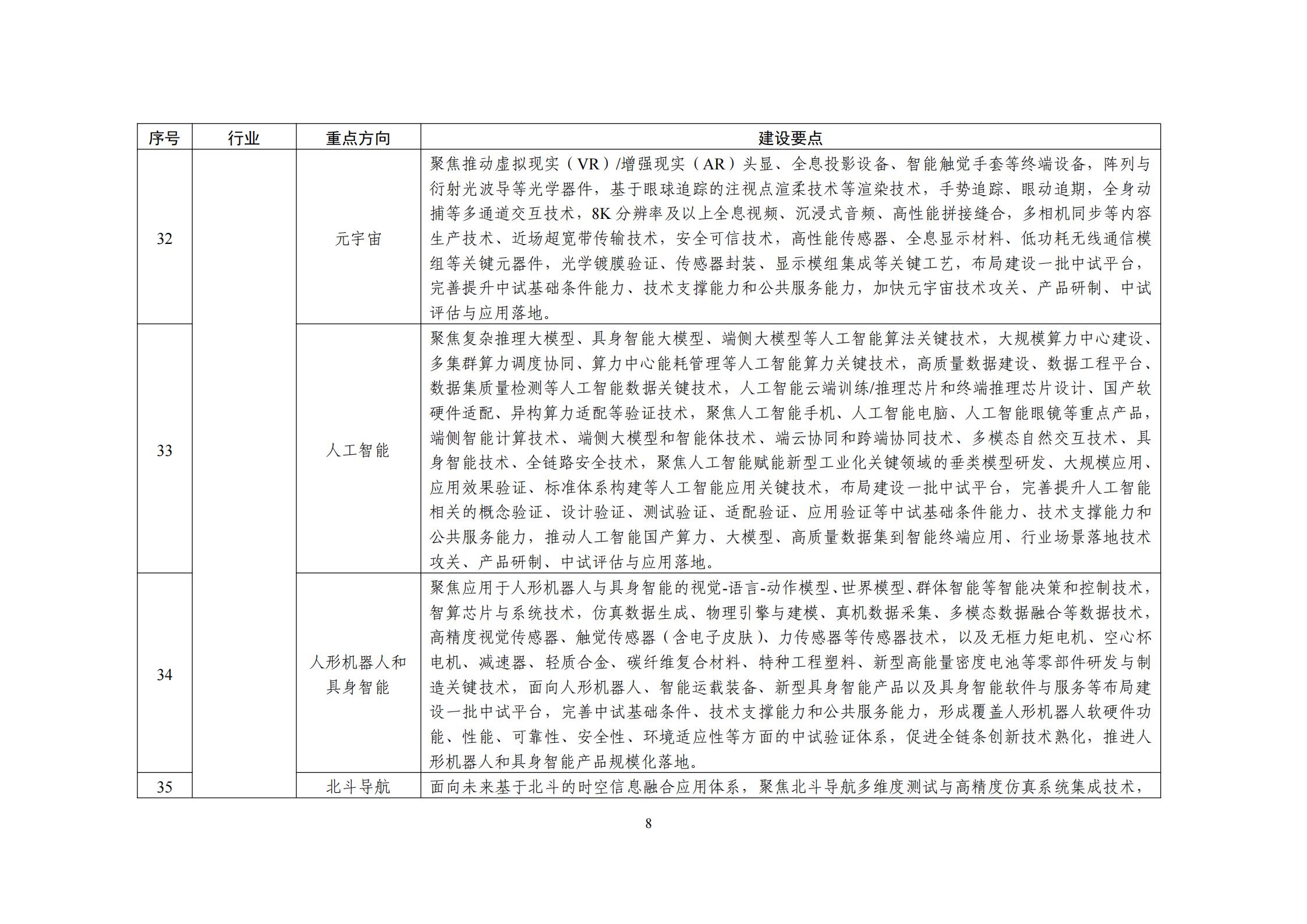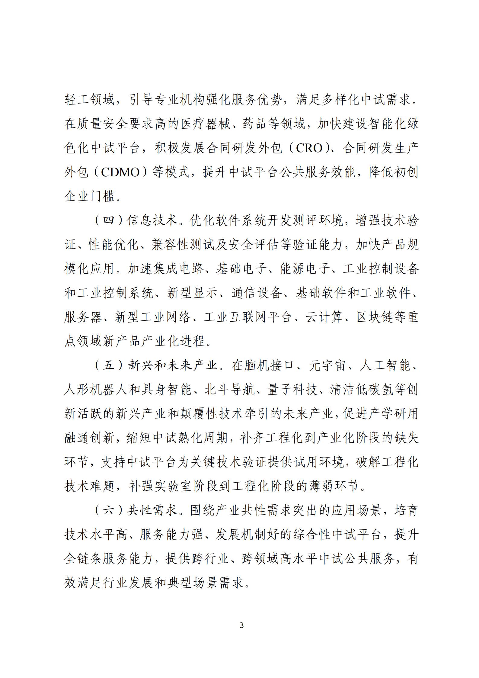 (三)补齐一批中试平台。坚持需求导向、分业施策、因地制宜,稳步有序布局建设一批中试平台,不断充实高水平中试平台新生力量。聚焦人工智能、人形机器人、量子科技、清洁低碳氢、生物医药、工业母机、仪器仪表以及重大技术装备、新材料、信息技术等关系未来发展、关乎产业安全、中试供给紧缺的关键行业领域,各地工业和信息化主管部门结合特色优势选择补齐领域,依托产学研用等主体布局建设中试平台。同等条件下,工业和信息化部优先支持补齐领域中试平台纳入部重点培育中试平台管理。