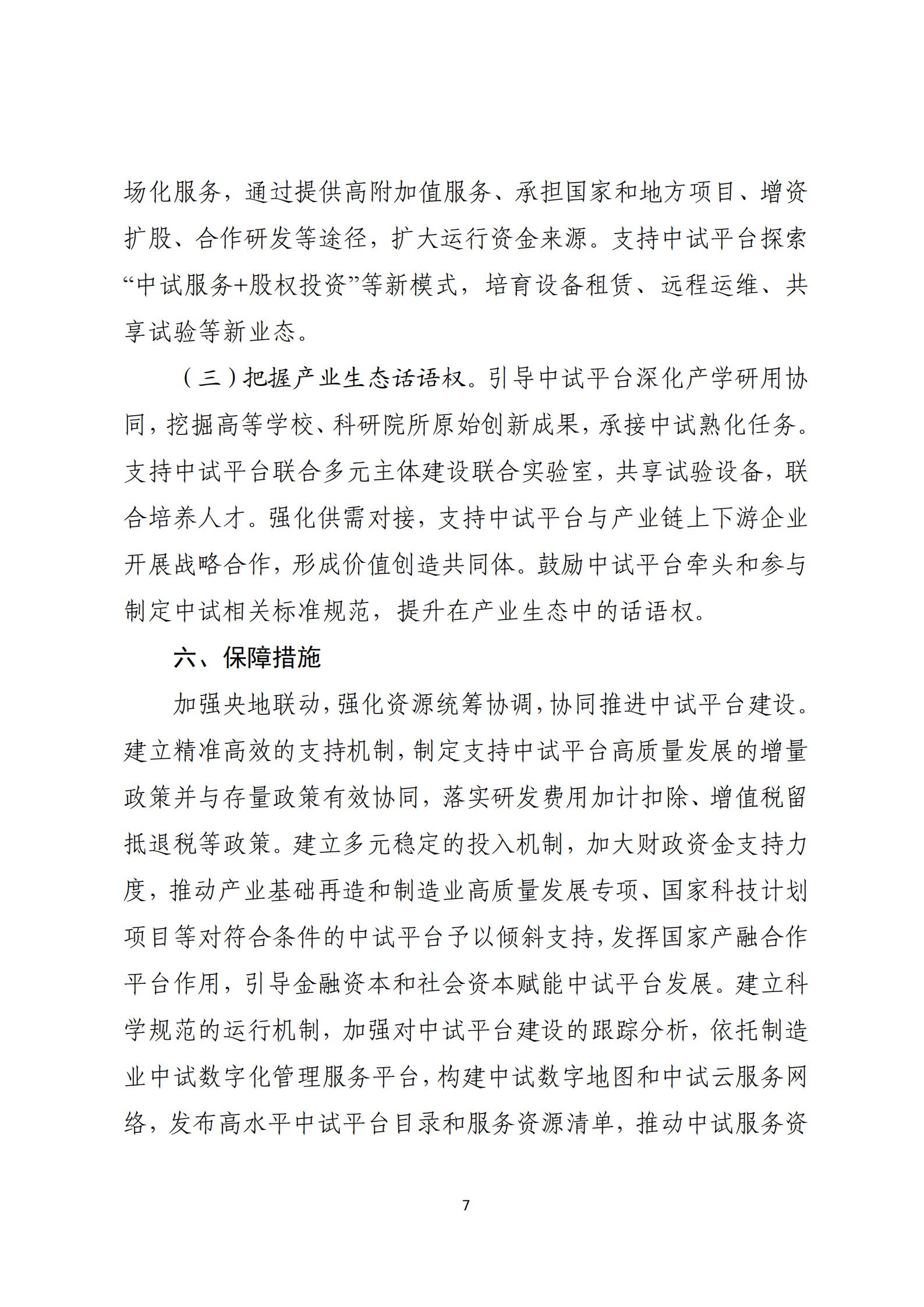 工业和信息化部办公厅关于进一步加快制造业中试平台体系化布局和高水平建设的通知