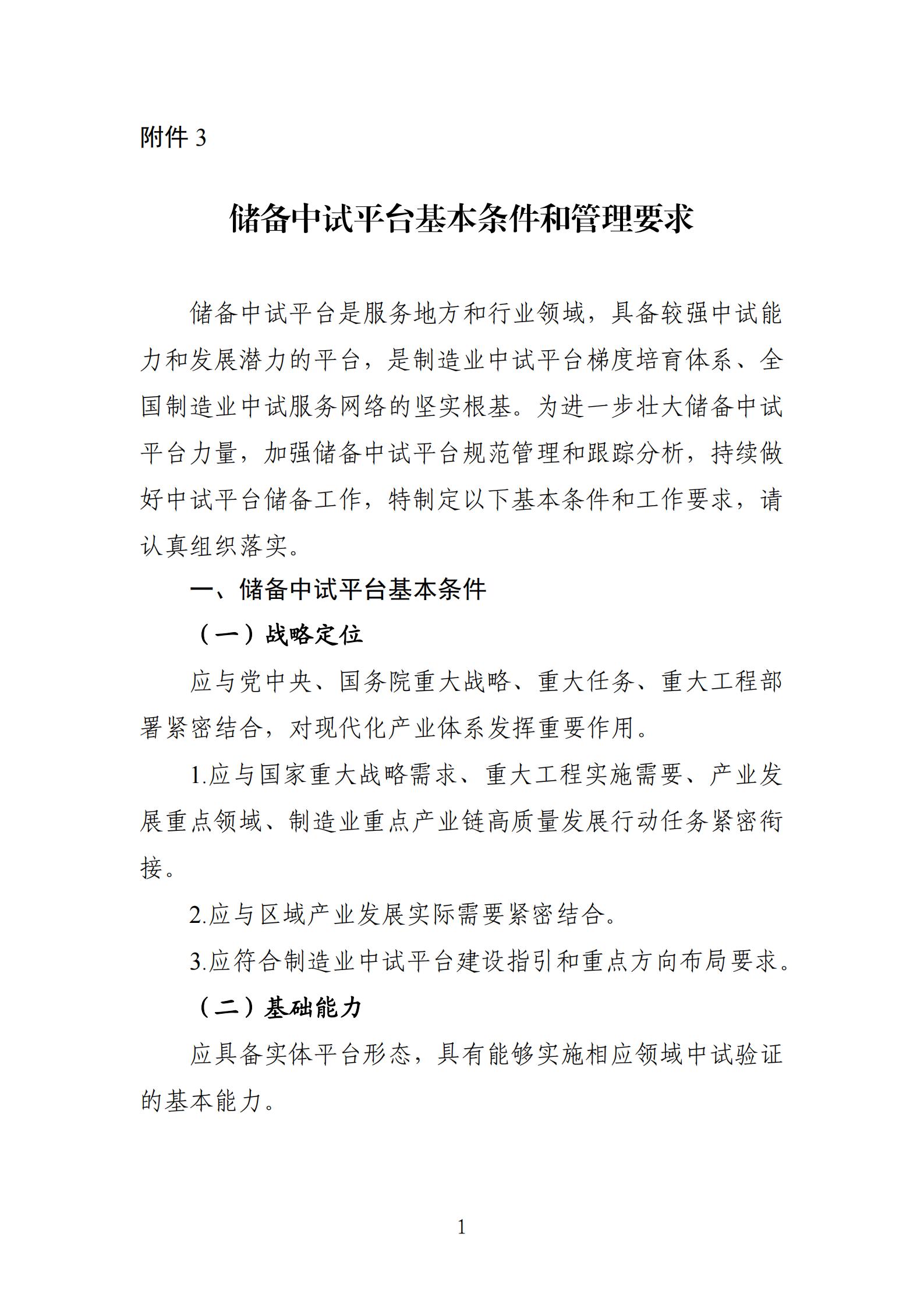 为落实《制造业中试创新发展实施意见》(工信部联科〔2024〕11号),进一步推进制造业中试平台体系化布局,加强高水平中试平台建设,现将有关工作通知如下: