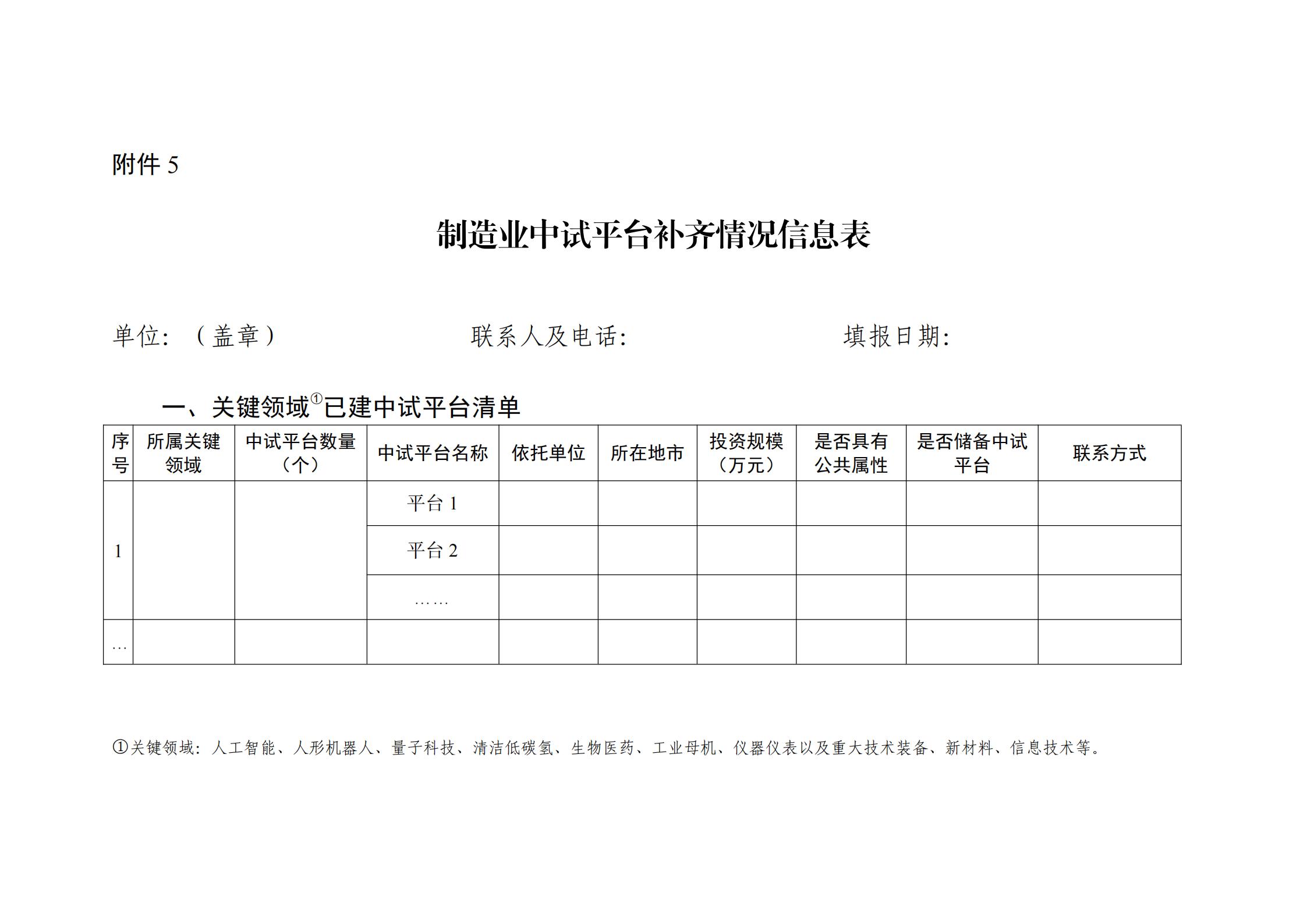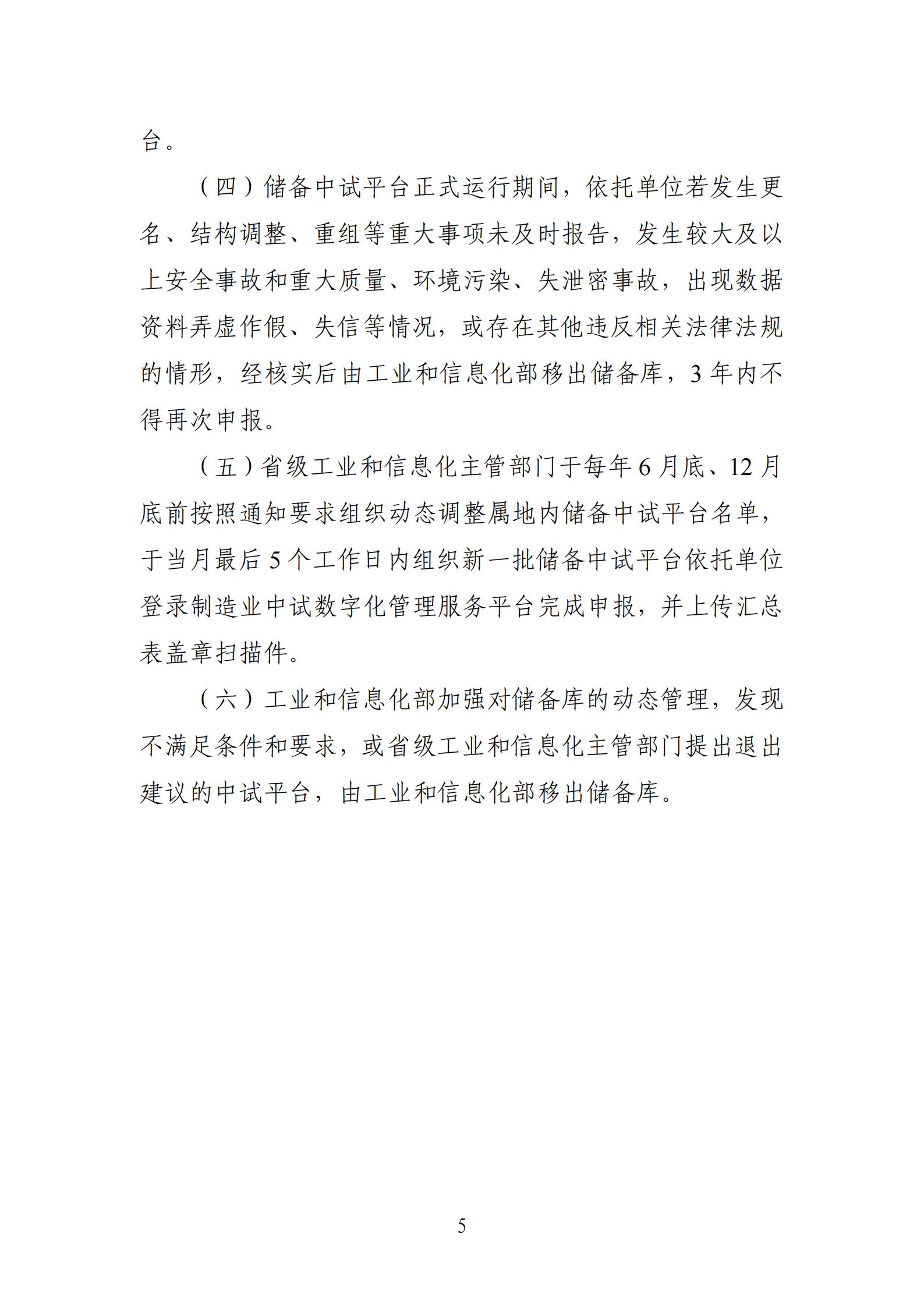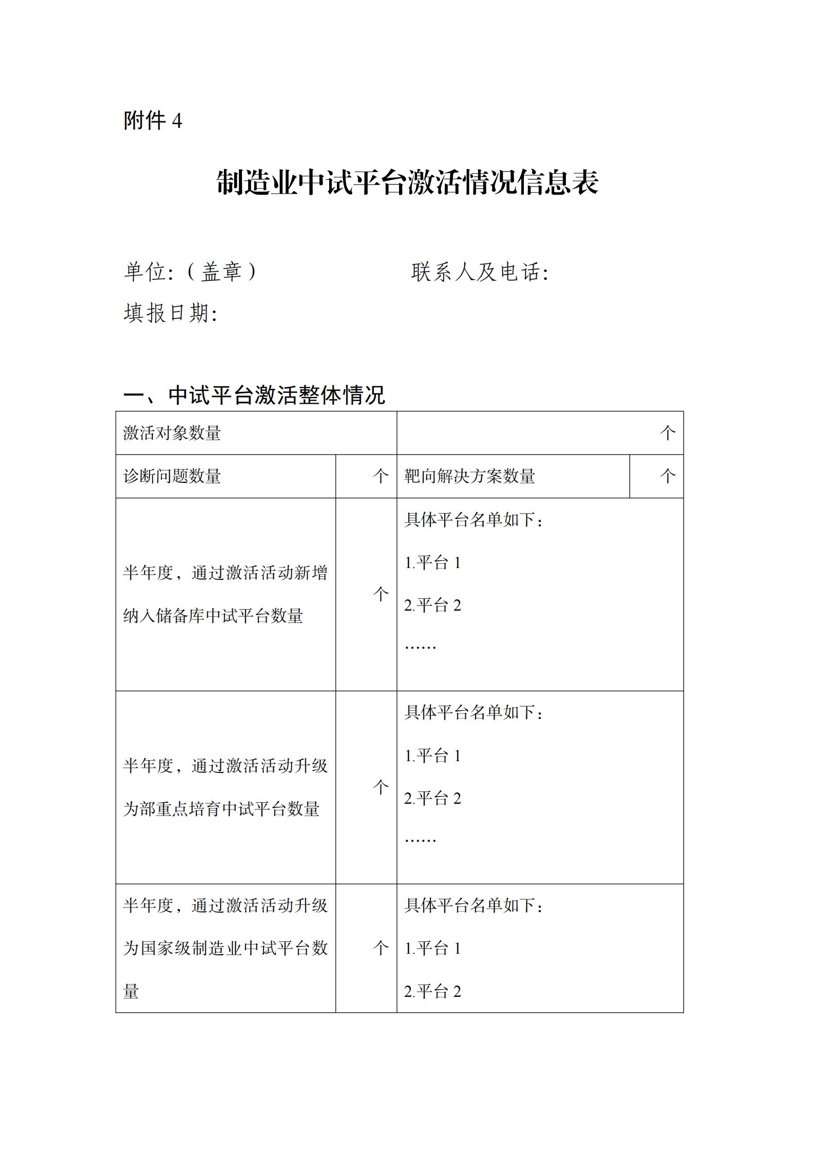 (二)各地工业和信息化主管部门于每年6月、12月最后5个工作日内将属地内储备中试平台名单动态调整情况、制造业中试平台激活情况信息表(附件4)和补齐情况信息表(附件5),在制造业中试数字化管理服务平台填报并上传盖章扫描件。