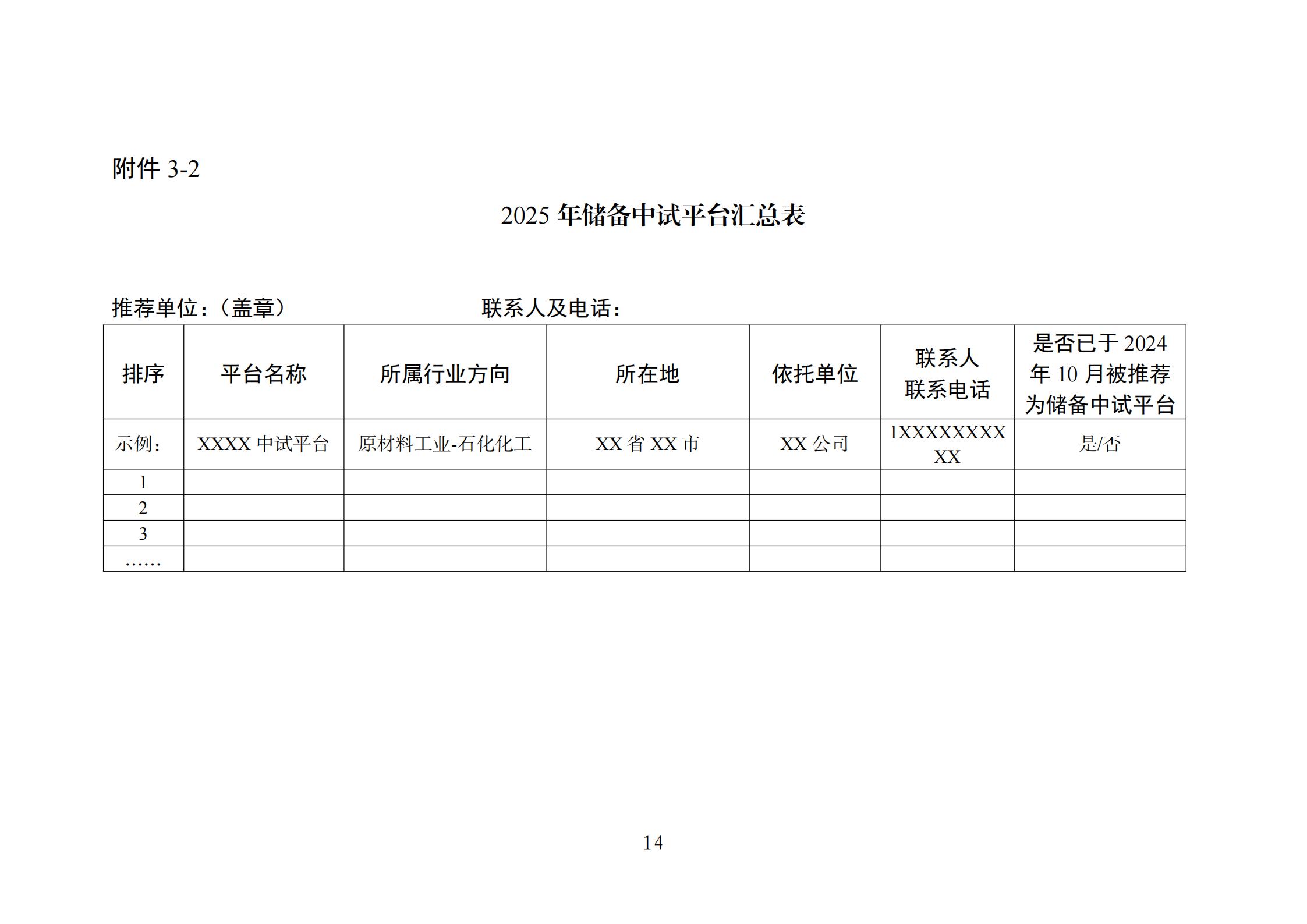 (一)各地工业和信息化主管部门于11月28日前依据《储备中试平台基本条件和管理要求》(附件3),动员符合条件的中试平台依托单位登录制造业中试数字化管理服务平台(http://zhongshi.ceprei.com)填报上传《储备中试平台申报信息表》盖章扫描件,并按照有关程序和要求遴选出储备中试平台,于12月15日前在制造业中试数字化管理服务平台上传《2025年储备中试平台汇总表》盖章扫描件。已纳入2024年度储备库的中试平台(首批工业和信息化部重点培育中试平台除外)须参照上述要求填报更新相关信息,由各地省级工业和信息化主管部门复核。
