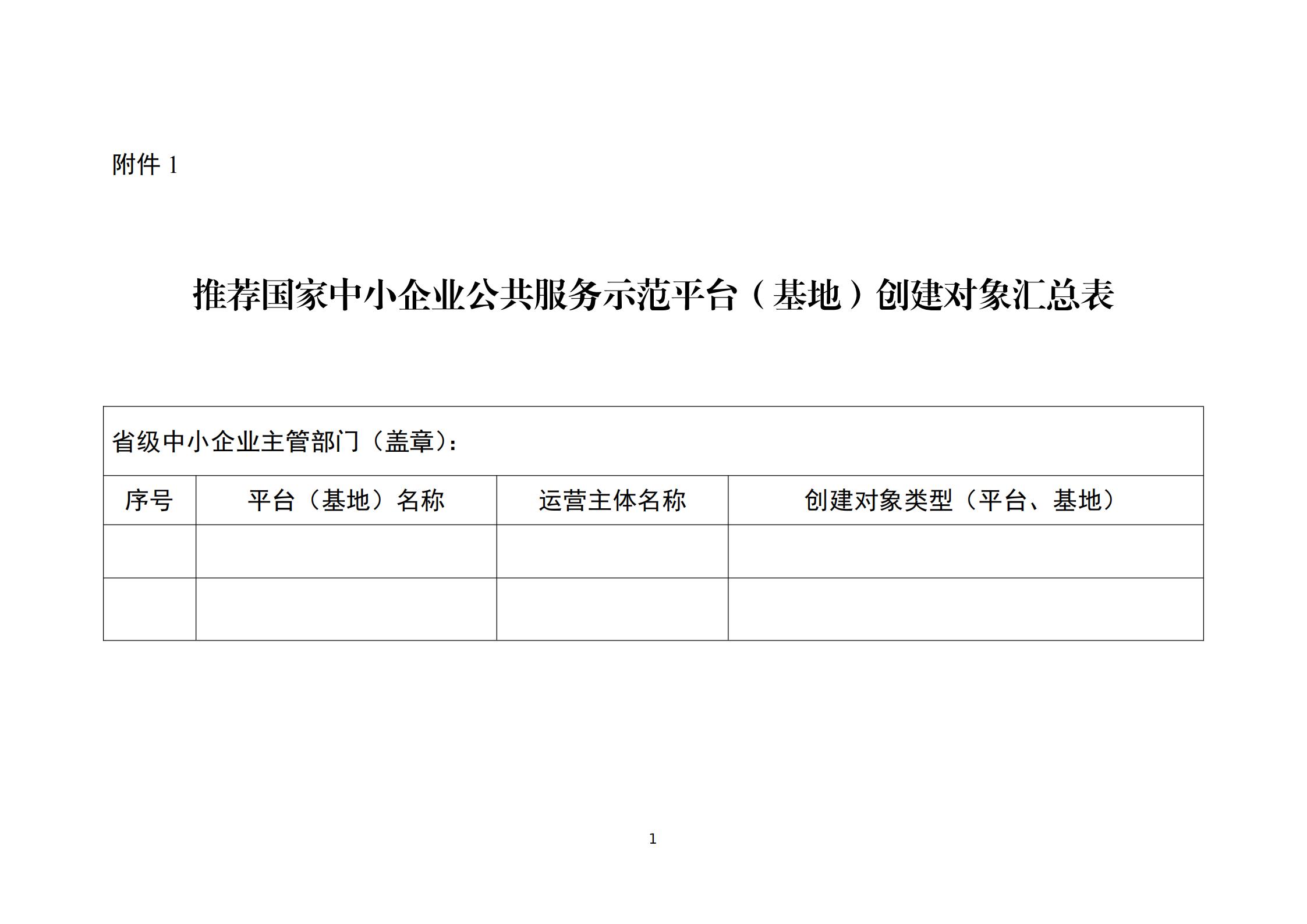 1.推荐国家中小企业公共服务示范平台(基地)创建对象汇总表
