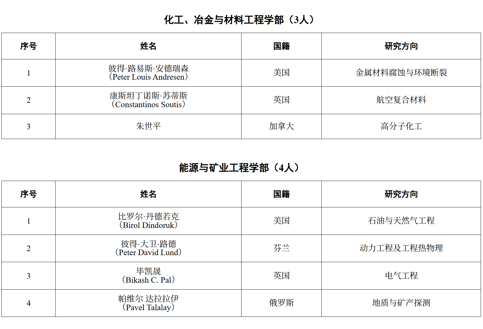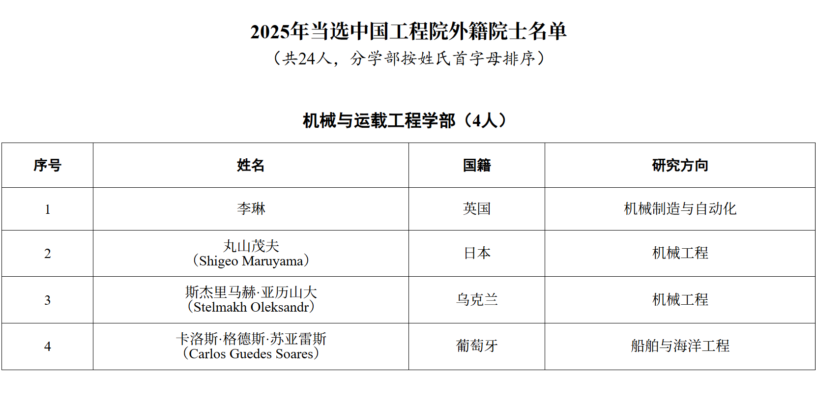 关于公布中国工程院2025年院士增选当选外籍院士名单的公告