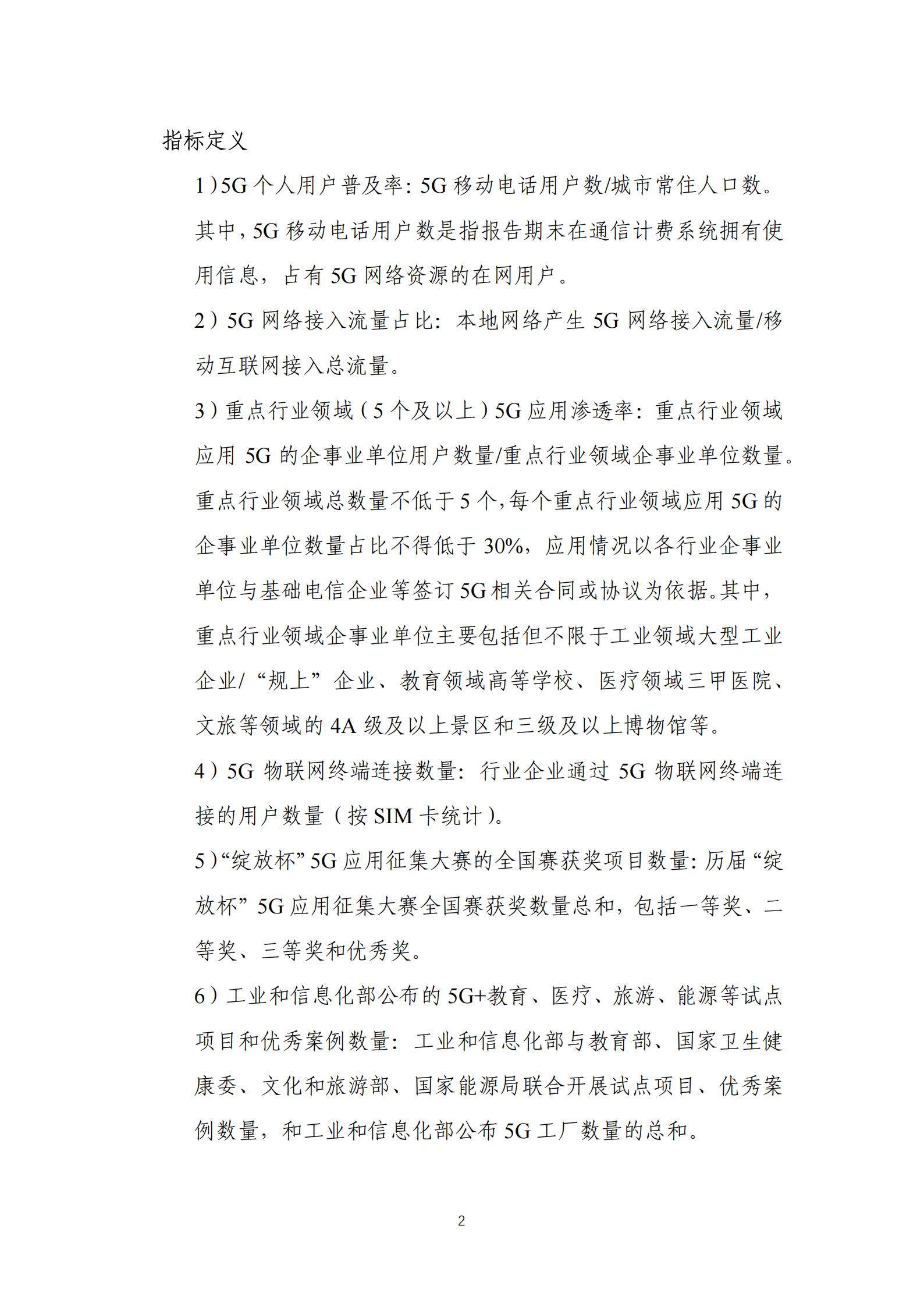 1.5G应用“扬帆”行动重点城市评估参考指标