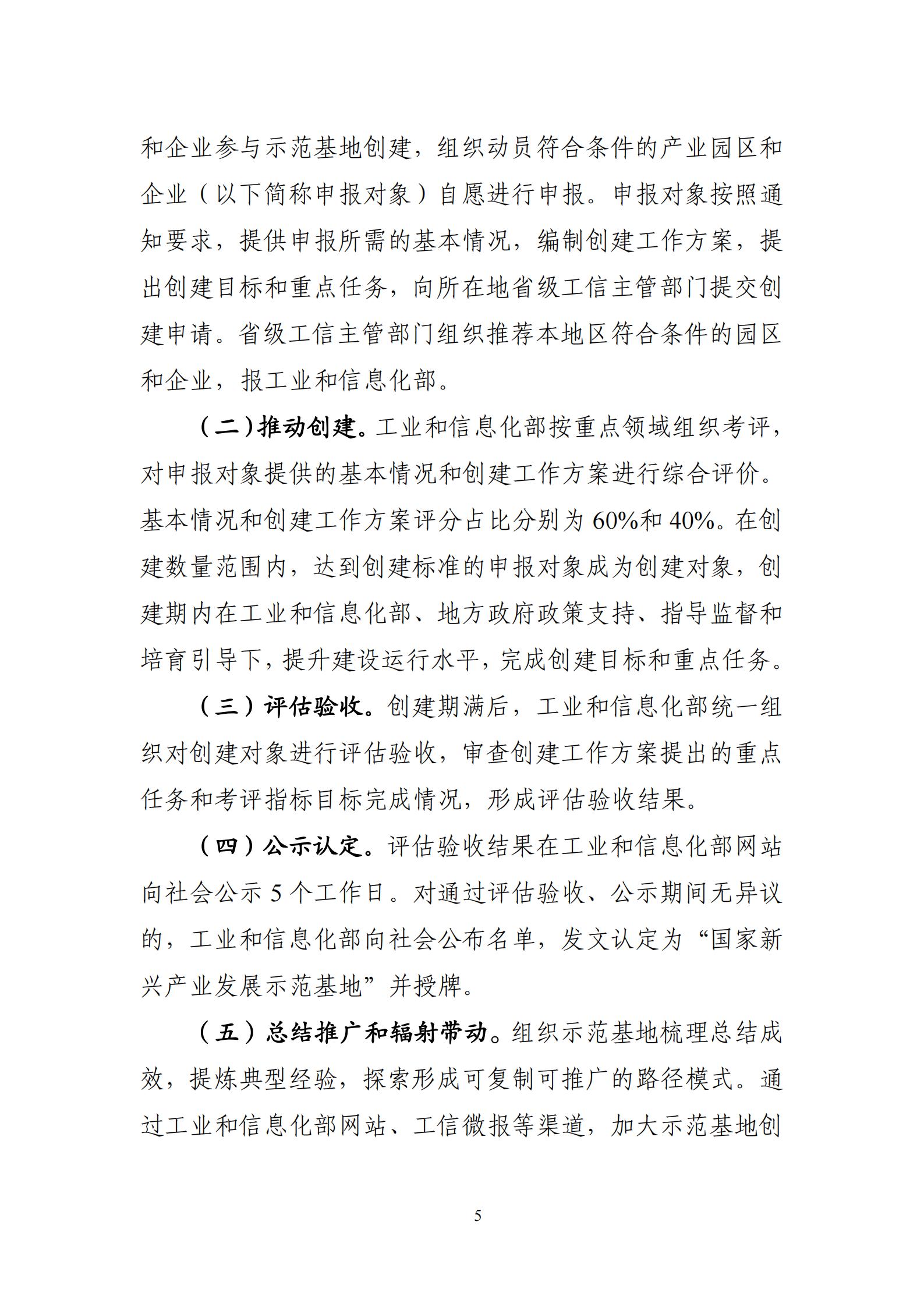 工业和信息化部关于开展国家新兴产业发展示范基地创建活动的通知