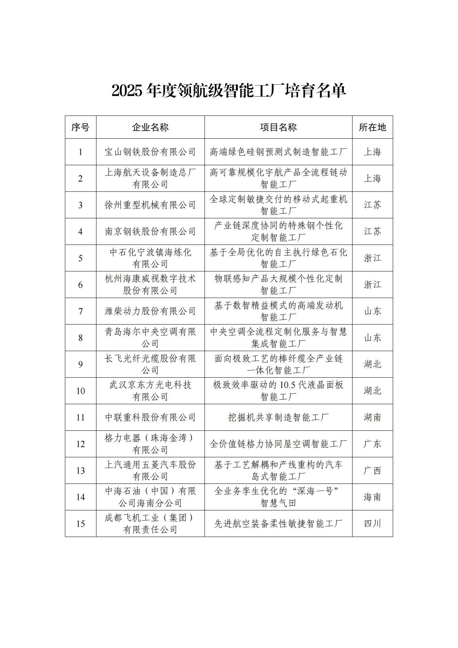 为贯彻落实《制造业数字化转型行动方案》,按照《“十四五”智能制造发展规划》任务部署,打造智能制造“升级版”,经省级有关部门推荐、专家评审、现场核查、网上公示等程序,现将2025年度领航级智能工厂培育名单印发给你们,请加强指导和服务,鼓励给予相应政策支持。