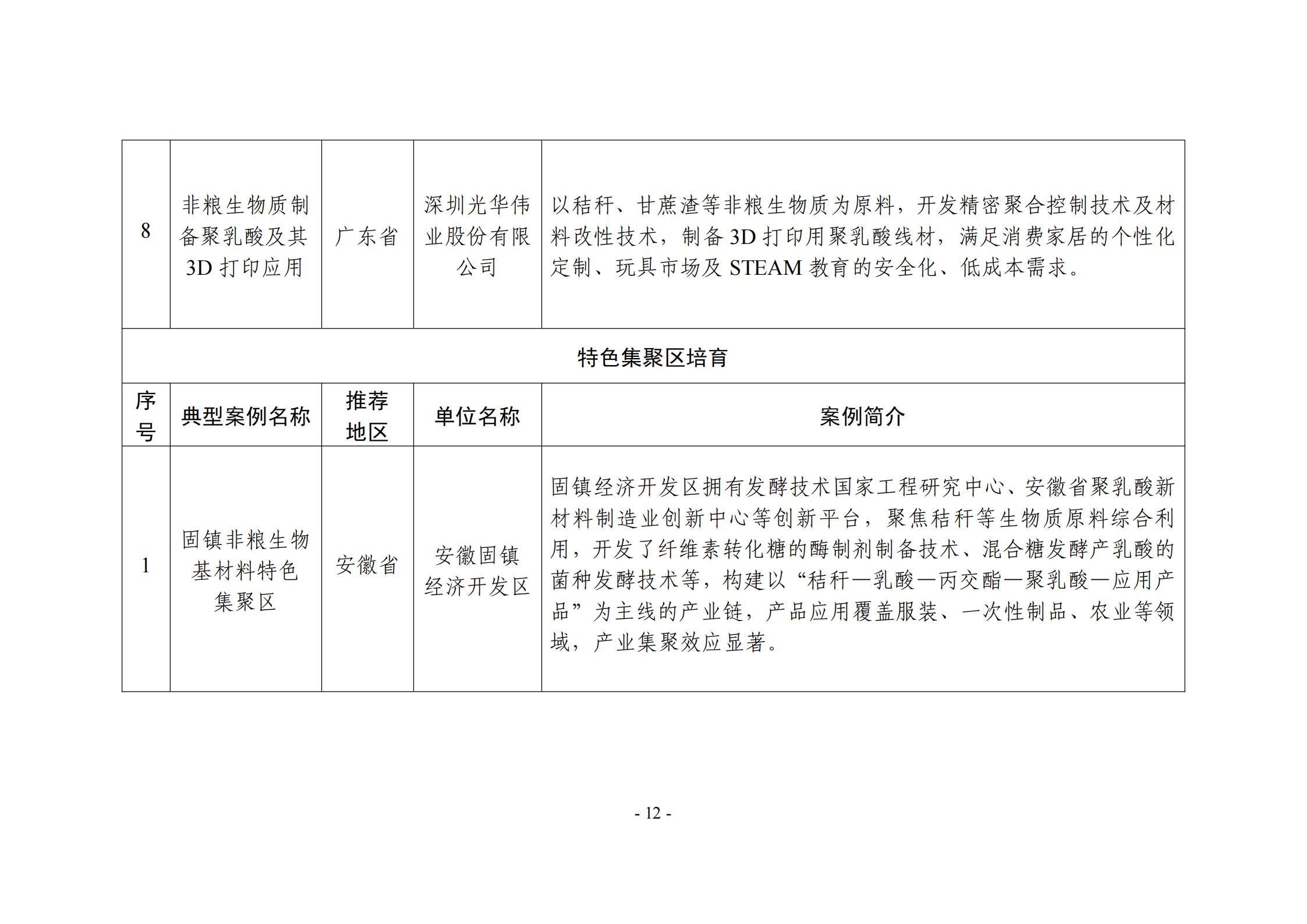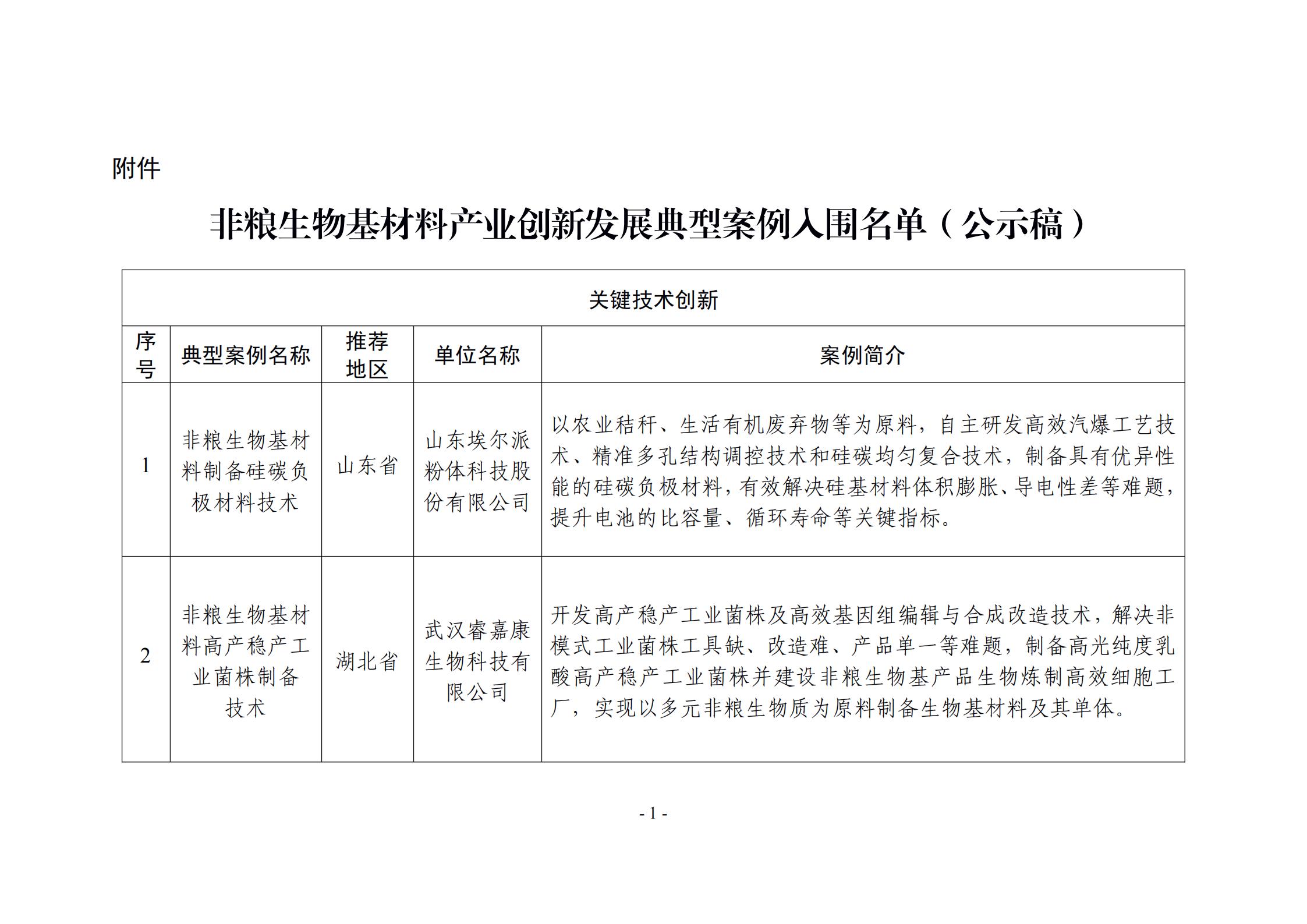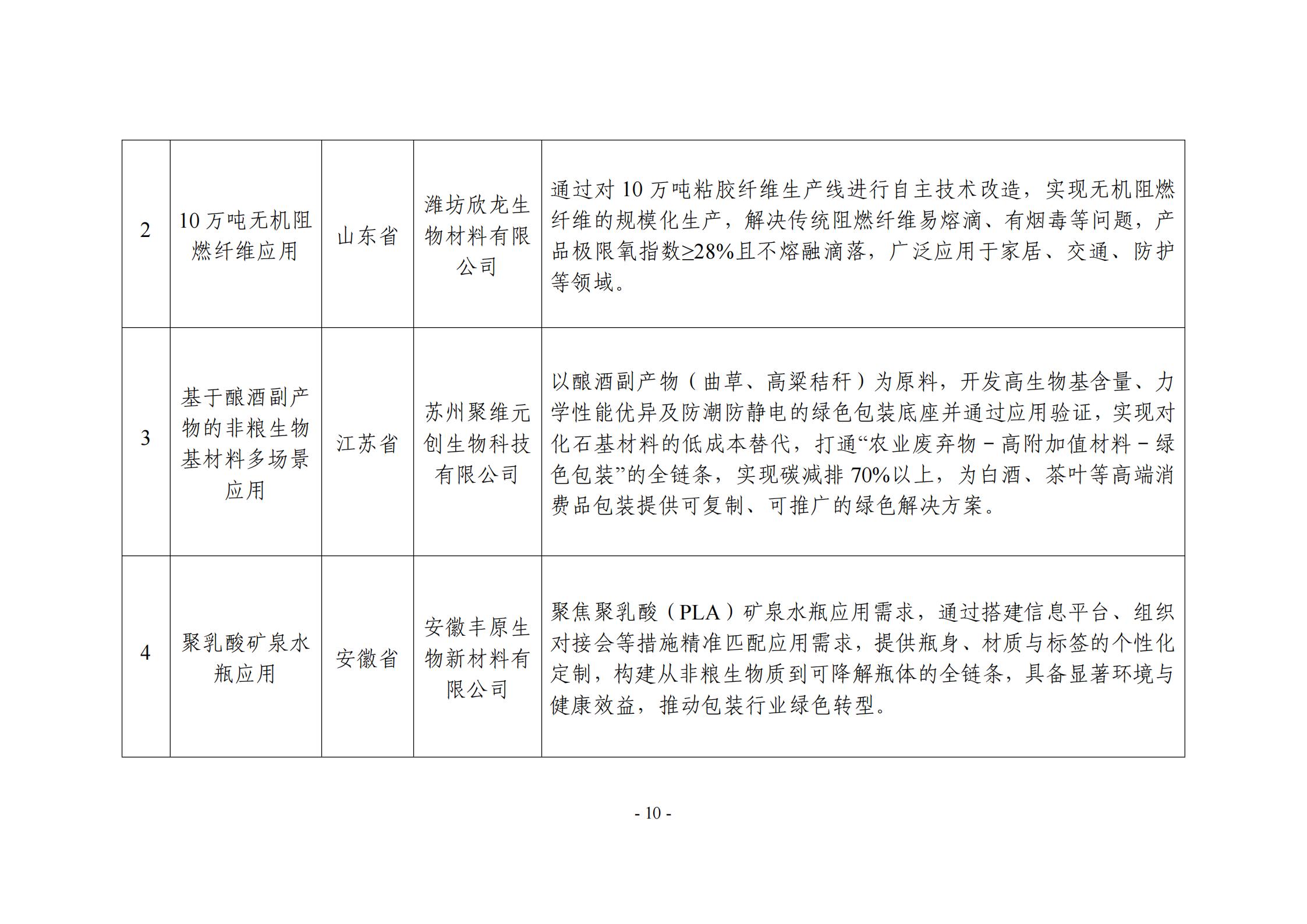 非粮生物基材料产业创新发展典型案例入围名单公示