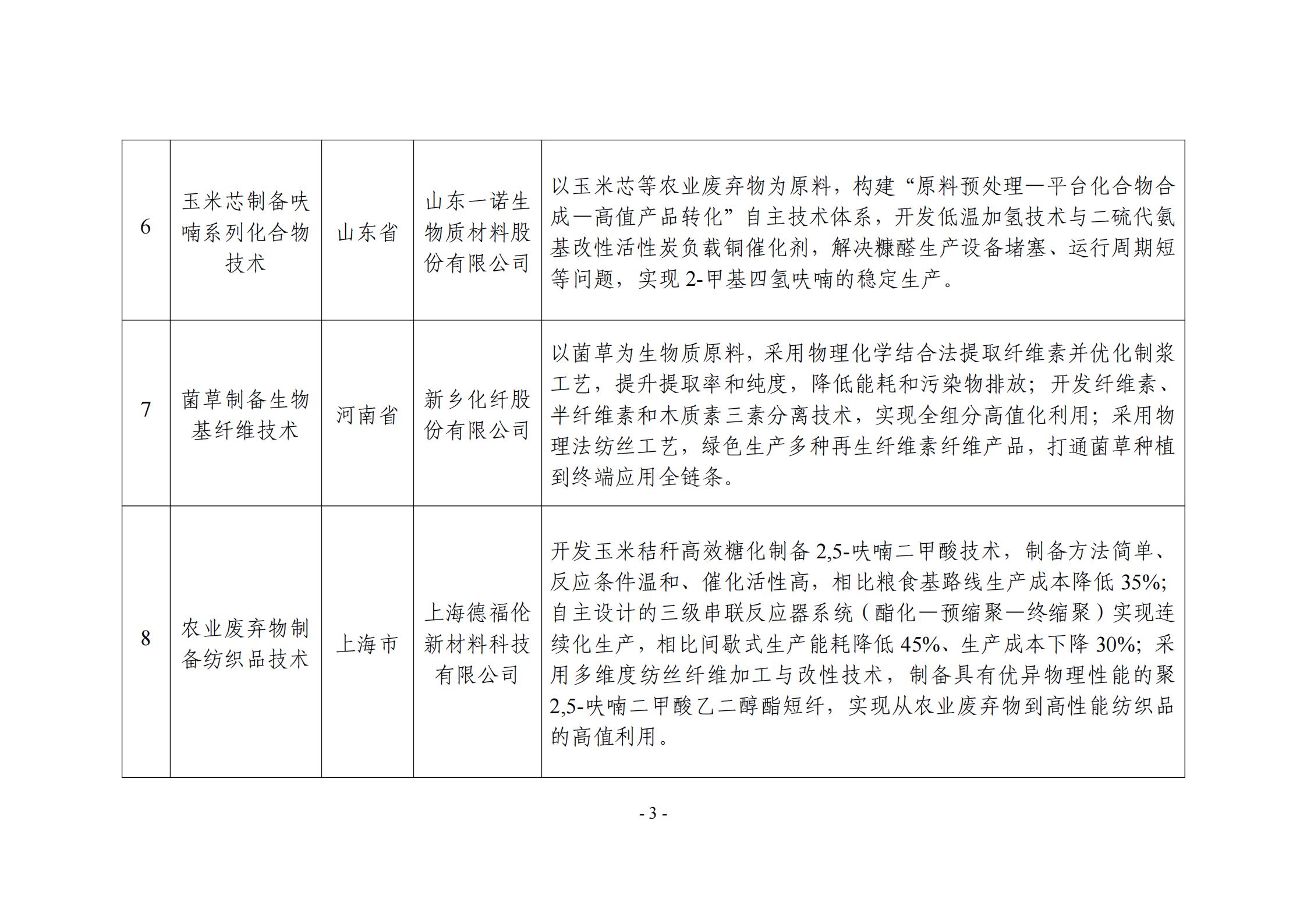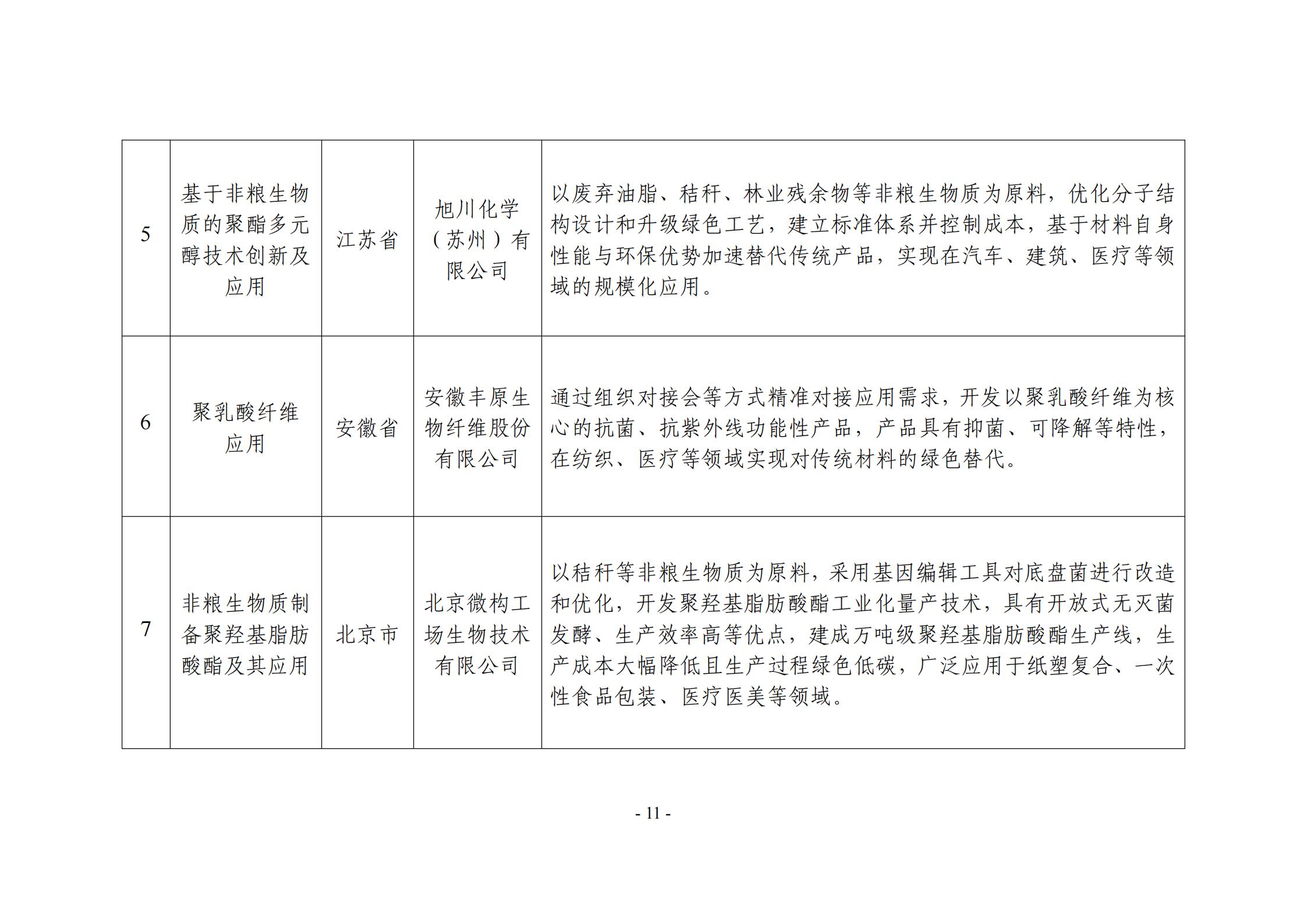 附件:非粮生物基材料产业创新发展典型案例入围名单(公示稿)