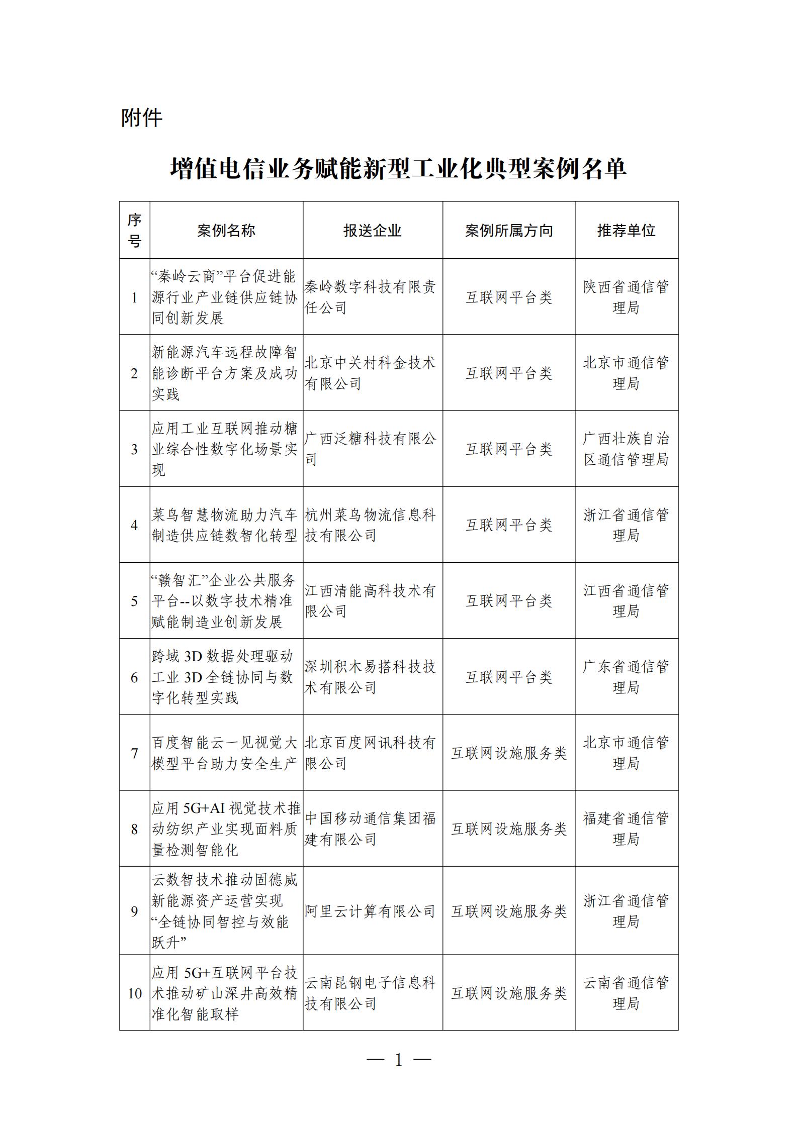附件:增值电信业务赋能新型工业化典型案例名单