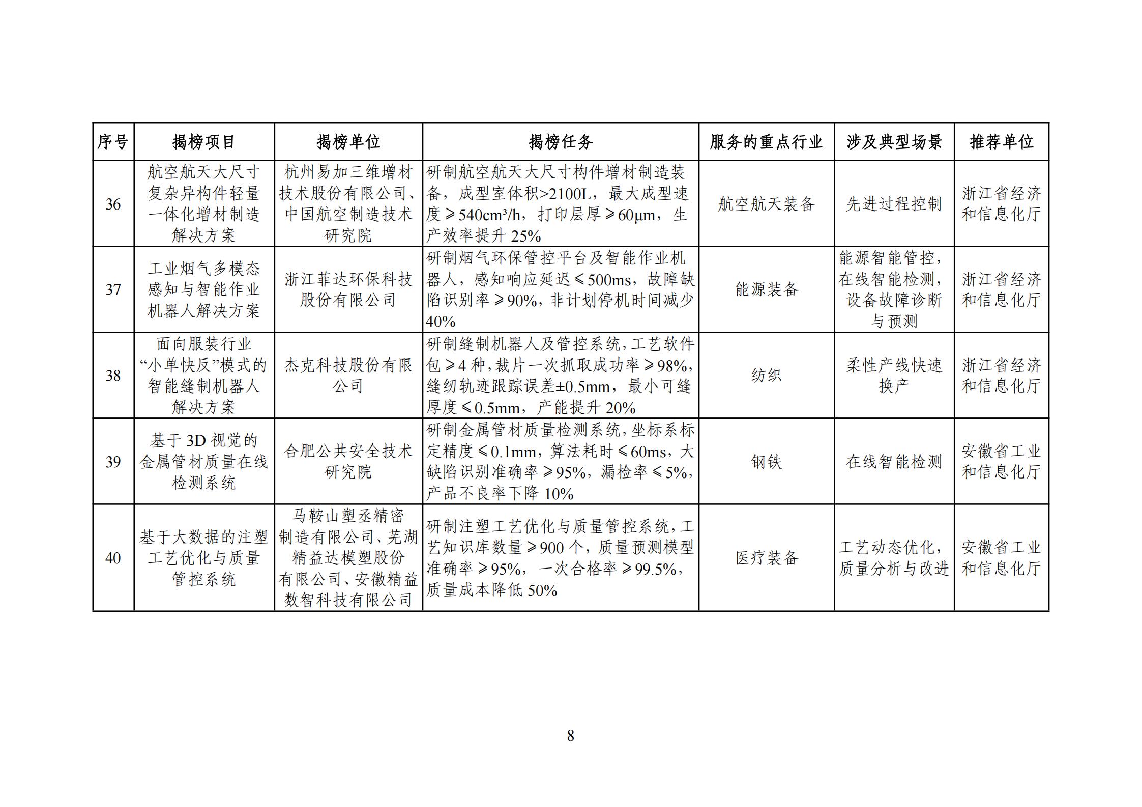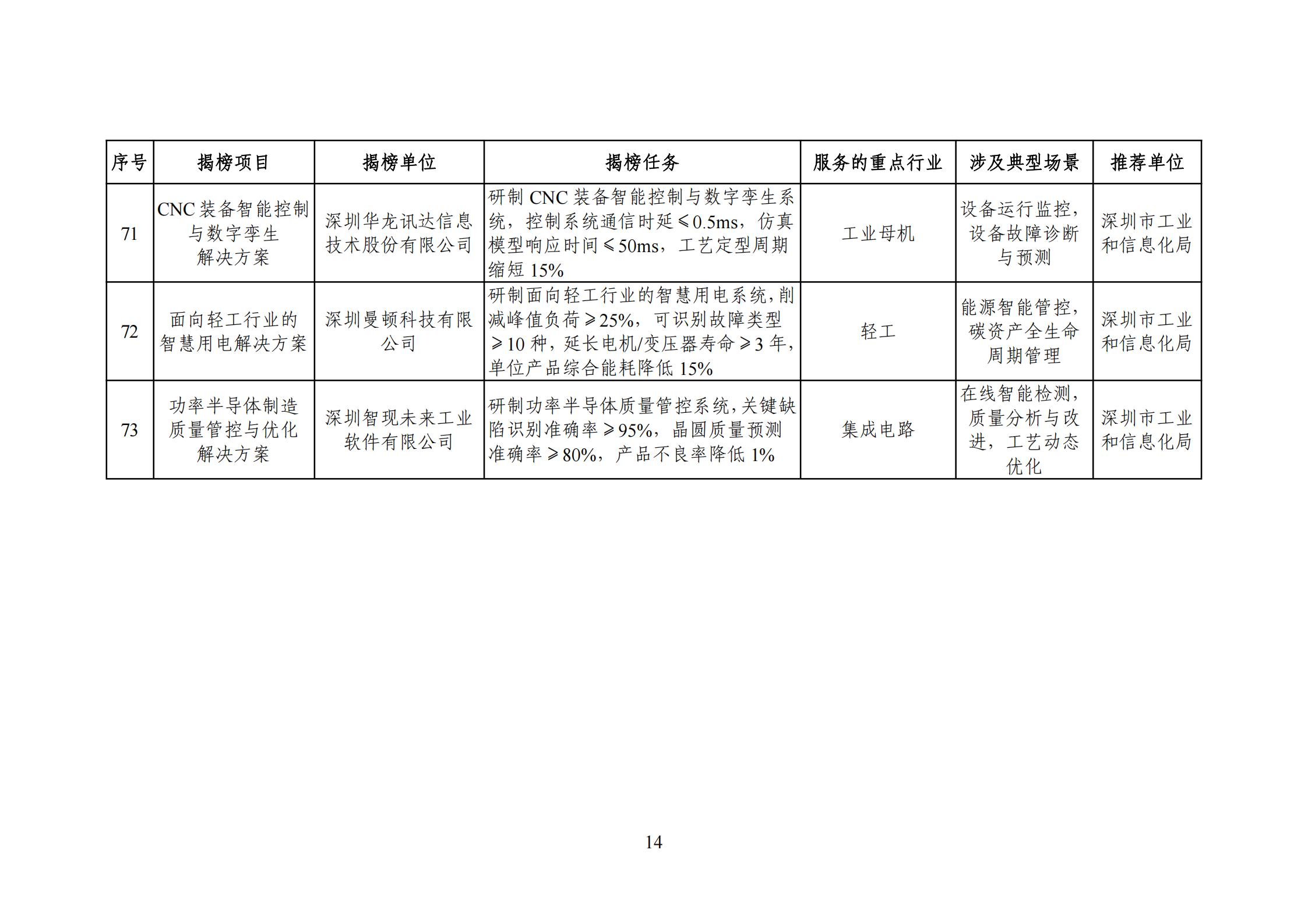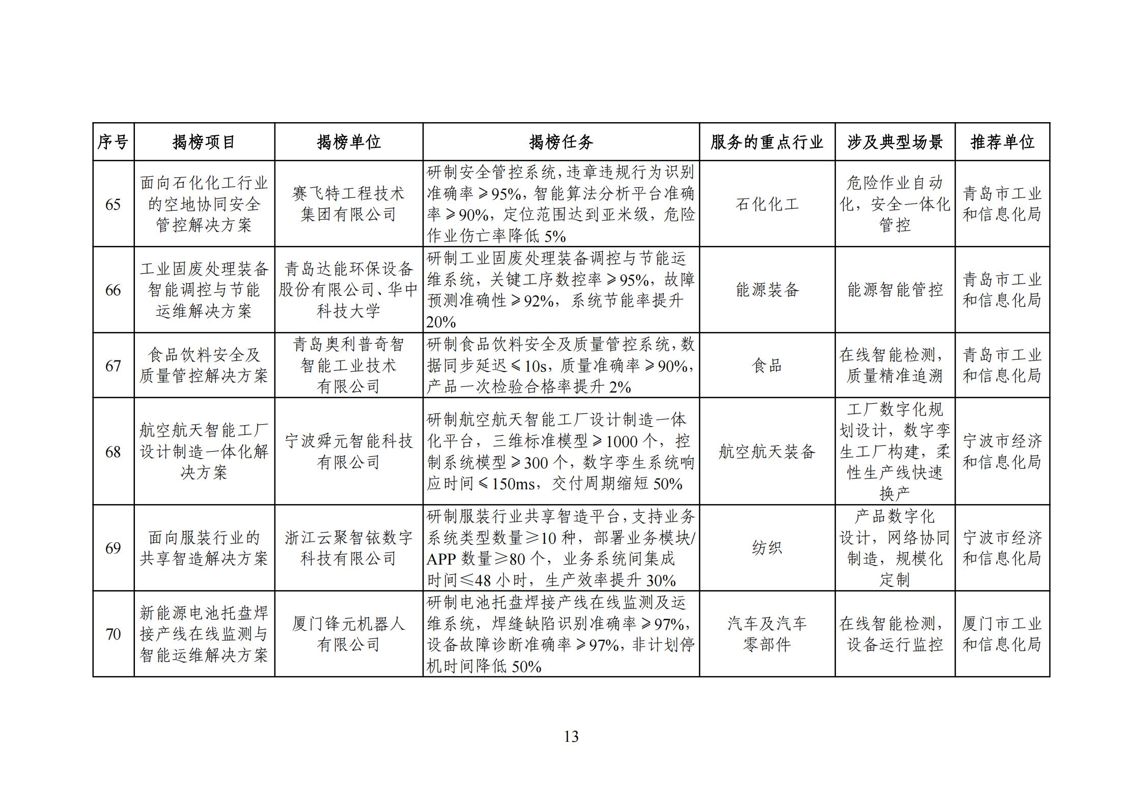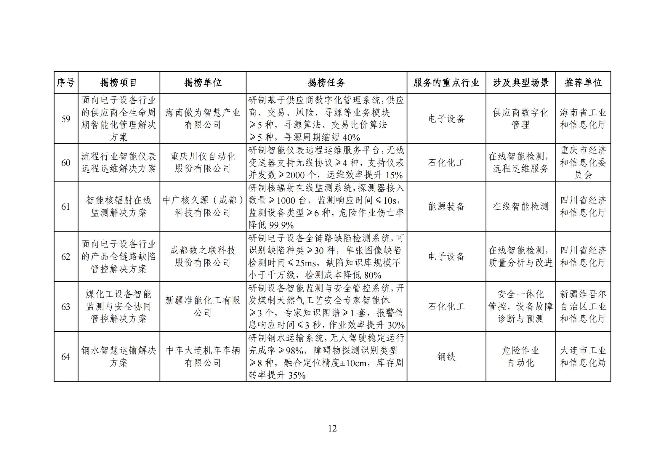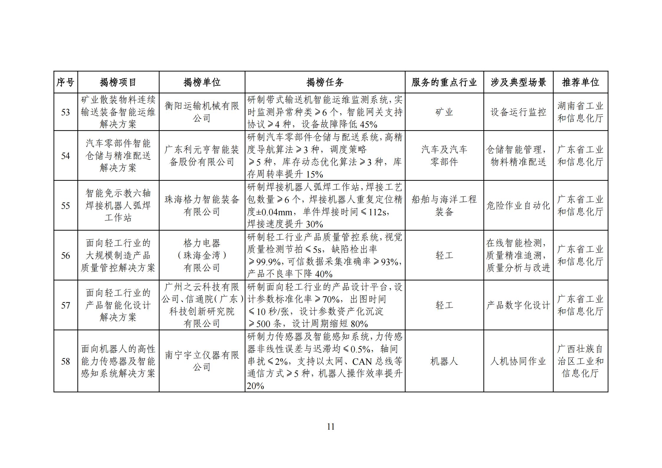 为贯彻落实《制造业数字化转型行动方案》,按照《“十四五”智能制造发展规划》任务部署,打造智能制造“升级版”,经省级有关部门推荐、专家评审、网上公示等程序,现将2025年度智能制造系统解决方案“揭榜挂帅”项目名单印发给你们,请加强指导、监督和服务,鼓励给予相应政策支持。