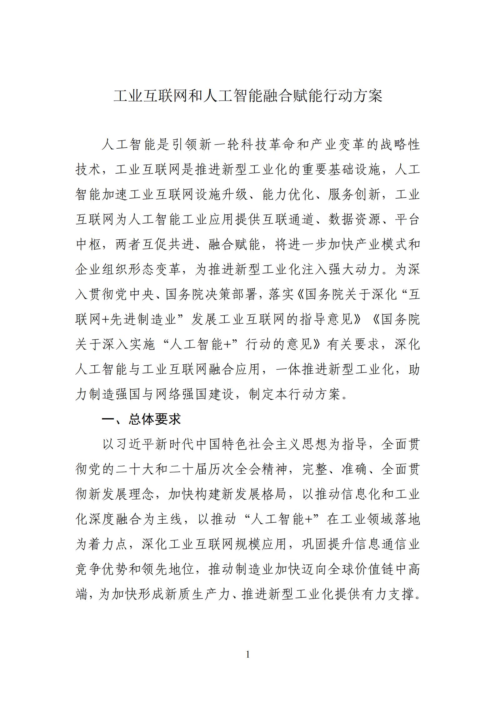 工业和信息化部办公厅关于印发《工业互联网和人工智能融合赋能行动方案》的通知