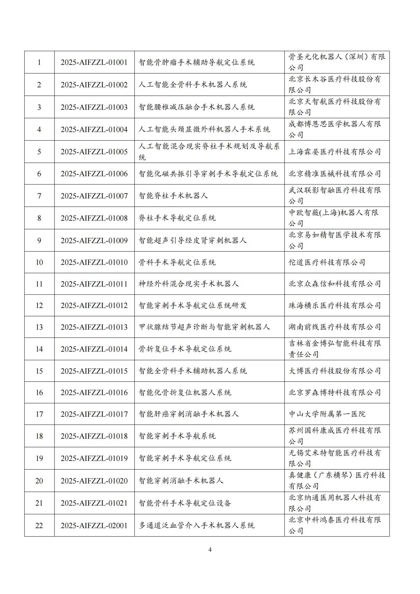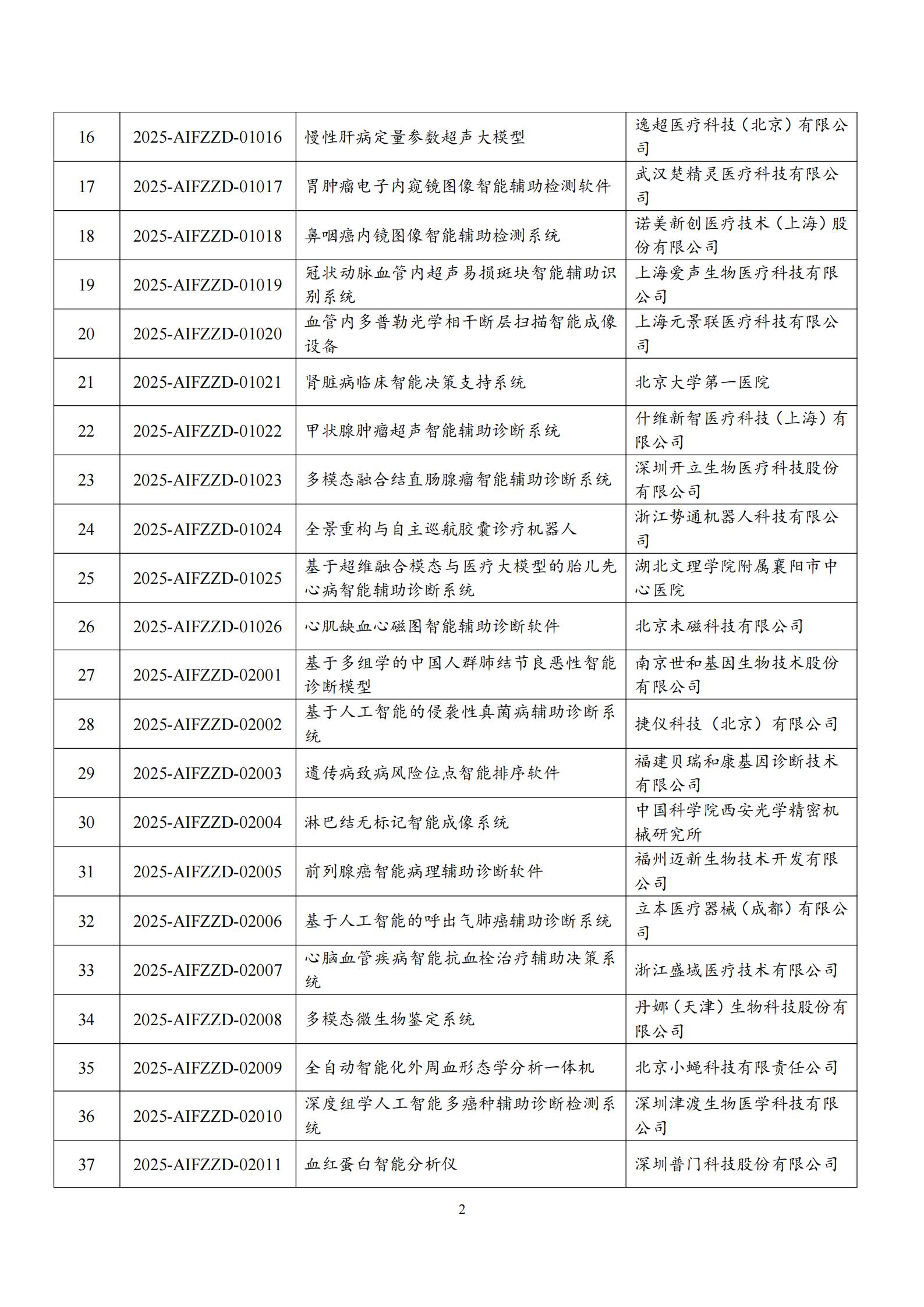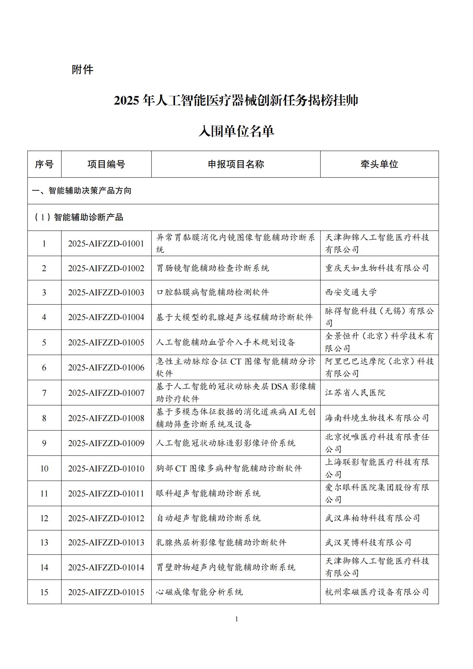 两部门关于公布2025年人工智能医疗器械创新任务揭榜挂帅入围单位的通知