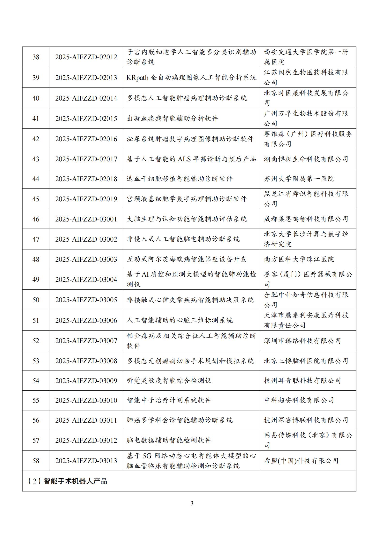 附件:2025年人工智能医疗器械创新任务揭榜挂帅入围单位名单