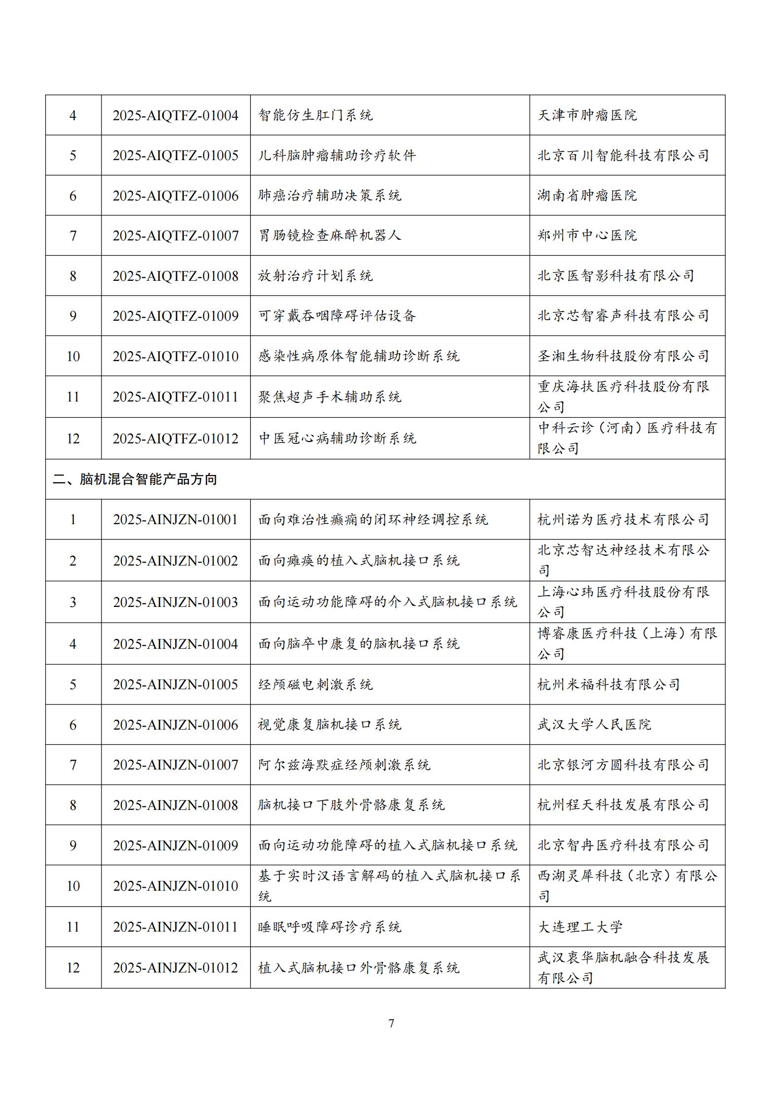 工业和信息化部办公厅 国家药品监督管理局综合和规划财务司关于公布2025年人工智能医疗器械创新任务揭榜挂帅入围单位的通知